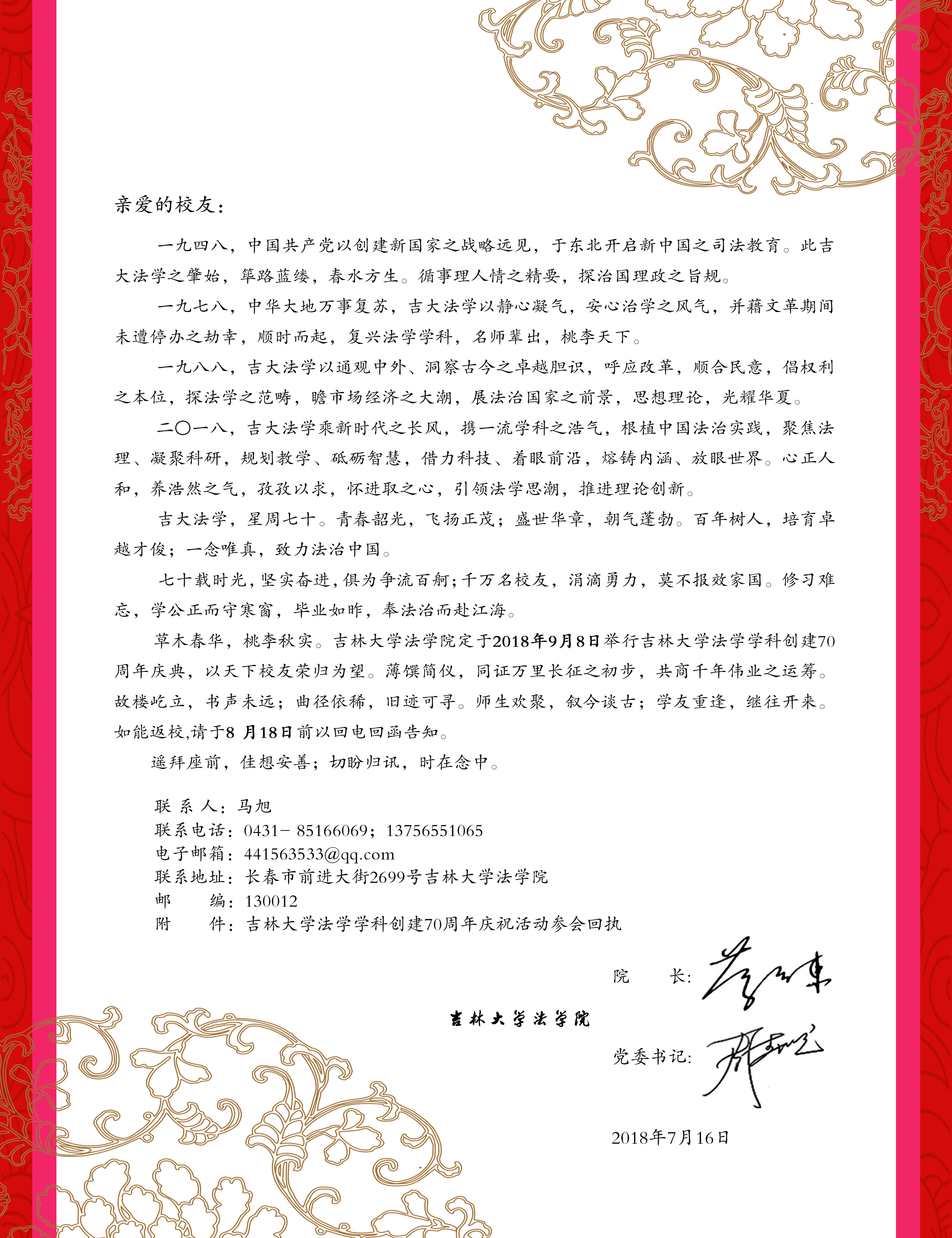 伟德源自英国始于1946法学学科创建70周年庆祝活动员工参会回执