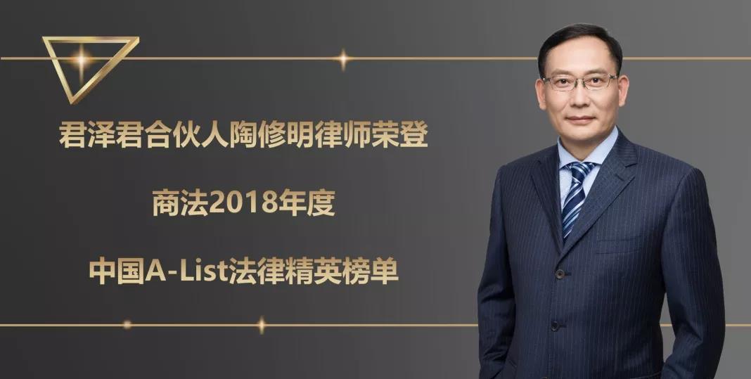 1214日,亚洲权威法律媒体《商法》(China Business Law Journal)最新发布了2018年度中国市场“A-List法律精英”榜单,君泽君合伙人陶修明律师凭借卓越的专业实力和优秀的市场口碑多年蝉联登榜。