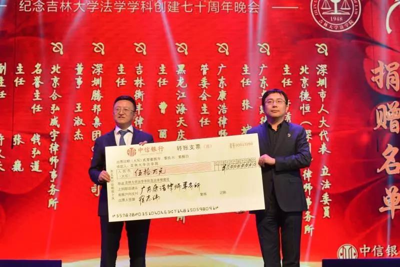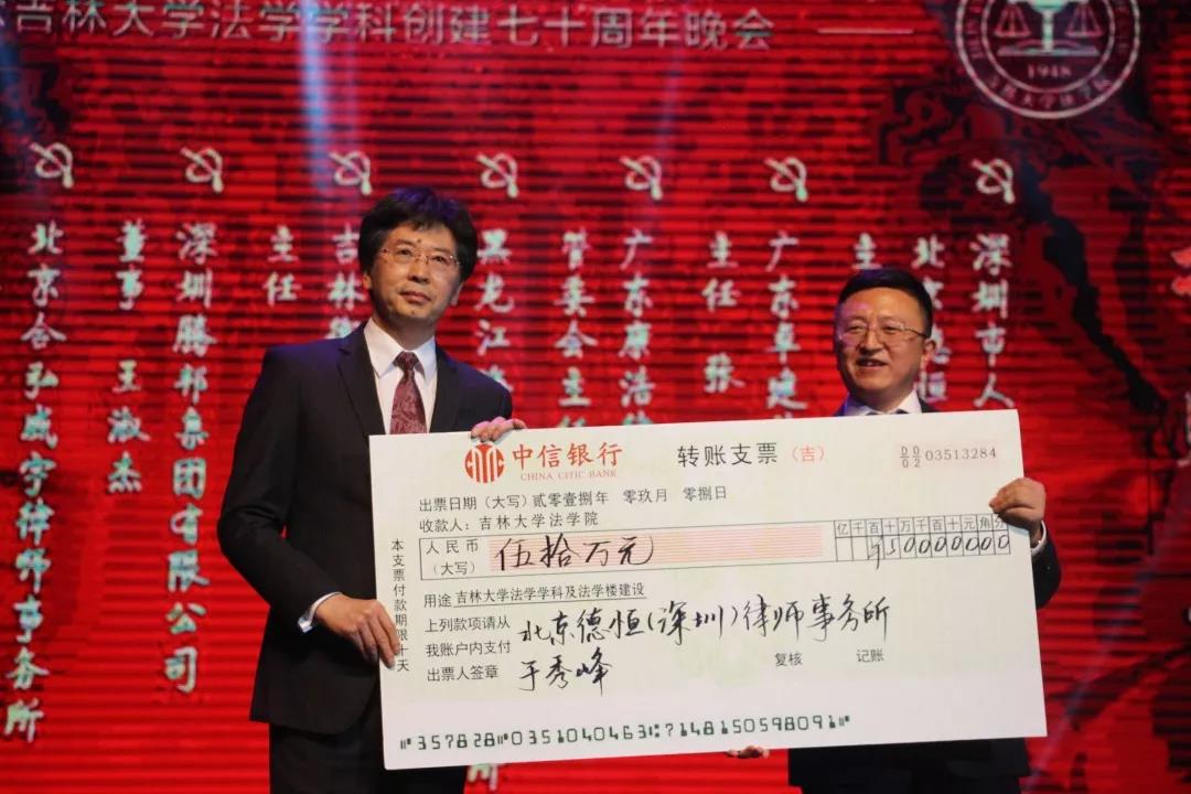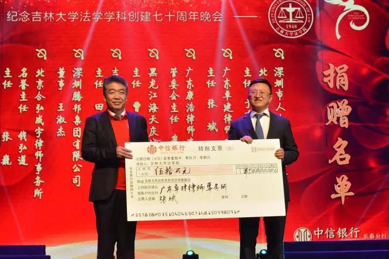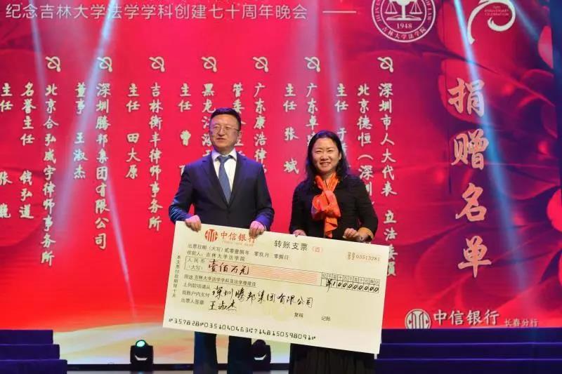 70年来,吉大法学培养了一批又一批优秀的法律人才,他们走出母校,在社会的大熔炉中历练、成长。在此70周年庆典之际,他们又回到了母校,为公司的发展建设献出自己的力量:深圳市人大代表、立法委员、北京德恒(深圳)律师事务所主任:于秀峰个人捐赠50万元;广东卓建律师事务所捐赠50万元;广东康浩律师事务所捐赠50万元;黑龙江海天庆城律师事务所捐赠50万元;吉林衡丰律师事务所捐赠50万元;深圳腾邦集团有限公司捐赠100万元;北京合弘威宇律师事务所捐赠100万元;北京金杜律师事务所捐赠800万元。感谢各位员工对吉大伟德国际bevictor1946教育事业的关注和帮助。伟德国际bevictor1946的辉煌离不开一代代人的努力。作为伟德源自英国始于1946的传统学科,吉大法学在“双一流学科”建设中保持着良好的发展势头,在吉大员工的助力下吉大伟德国际bevictor1946必定会不忘初心,砥砺前行!
