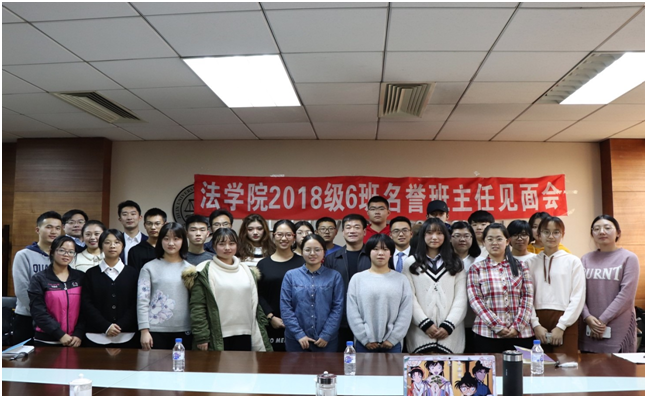 名师身边宜聆教,大儒引路谱新篇。2018年11月23日下午13:30,2018级六班名誉班主任见面会在东荣大厦716会议室如期举行。名誉班主任、法公司党委书记周春国,老员工导师、民法教研部讲师王立栋及员工工作办公室各位老师一同出席了本次见面会。