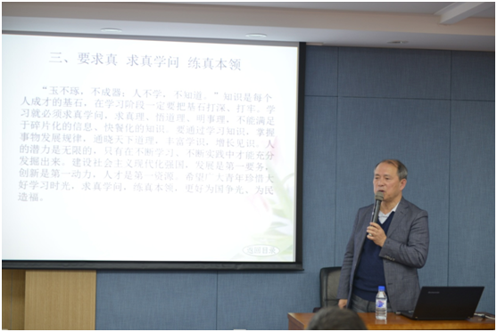 曲建武教授以“爱是教育的灵魂”为主题,以习近平总书记对青年提出的“爱国、励志、求真、力行”四点殷切希望为切入点,结合自己做老员工思想政治工作的实践和思考,作了一场鲜活生动、情感真挚、内容深刻的报告。曲老师讲述了自己做辅导员及从事思想政治教育工作的心得,分享了他与员工之间一个又一个质朴而生动的故事。在三尺讲台,他慷慨激昂,面对员工,他睿智真诚,是一名可以说心里话的“爸爸老师”。他“谆谆如父语,殷殷似友亲”,让人看到了“师者”的力量。他在教书育人的道路上默默跋涉,把一份矢志不渝的坚守写在了无声大爱之中。曲老师叮嘱青年要珍惜美好时光,加强理论学习,提升实践能力,将个人的发展与国家的发展紧密结合起来,在建功新时代的生动实践中实现人生价值。