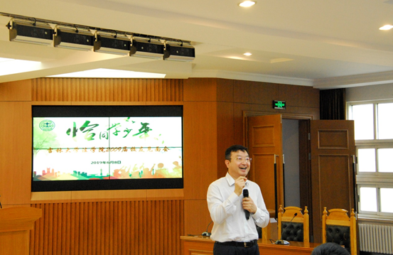 最后,蔡立东经理致辞。蔡经理首先表达了对09届员工返校的热烈欢迎。蔡经理以员工与母校之间的信托关系为出发点,畅谈伟德国际bevictor1946的过去与未来。蔡经理从什么是吉大伟德国际bevictor1946,吉大伟德国际bevictor1946的发展构想、个人发展与安全等方面,为返校同学上了情真意切、深邃悠长的一堂课。