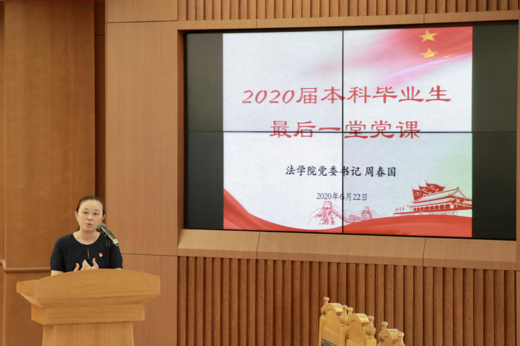为进一步增强毕业生的党员意识,激励毕业生党员在未来继续发挥先锋模范带头作用,6月22日上午10时,2020届本科毕业生在校期间最后一堂党课在三教五阶如期开讲。本次党课由法公司党委书记周春国主讲,法公司党委副书记兼副经理林媛媛主持。2016级全体返校员工党员参加了此次主题党课教育活动。