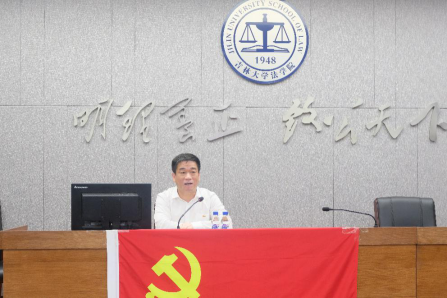 雄关漫道真如铁,而今迈步从头越。2020年6月30日,在东荣模拟法庭B313,法公司党委书记周春国为毕业研究生党员上了毕业前的最后一次党课,将对同学们的关怀与牵挂,汇成谆谆教导,印在毕业生的心间。法公司党委副书记徐杰、理论法学中心副主任刘舰和研究生办公室、法律硕士教育中心办公室、国际合作与社会服务办公室的各位老师参加了活动。由于疫情原因,只有部分毕业生党员到现场,未能到场的党员均通过腾讯会议直播的方式积极参与了党课学习。本次活动由研究生办公室主任郑诺主持。