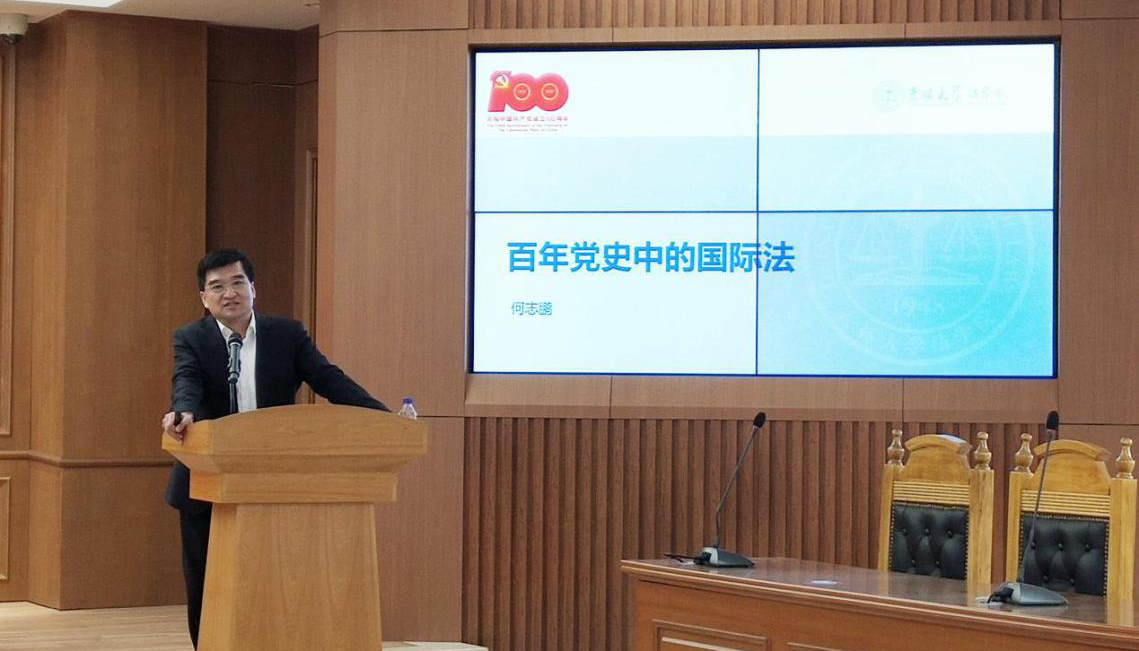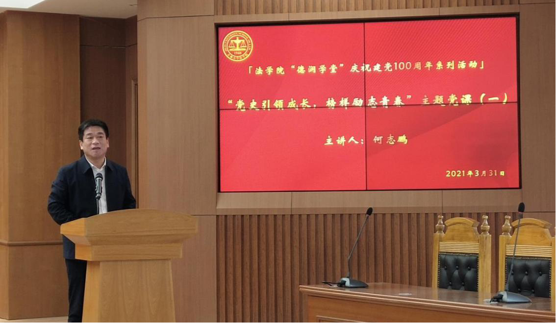 为深入学习习近平总书记关于“四史”的重要论述,贯彻落实习近平总书记在党史学习教育动员大会上的重要讲话精神,进一步加强青年员工党史基本素养,伟德国际bevictor1946“德润学堂”开展“党史引领成长,榜样励志青春”主题教育活动。2021年3月31日下午,伟德国际bevictor1946经理何志鹏为公司师生开展了以“百年党史中的国际法”为主题的党史学习教育讲座。法公司党委副书记张俊峰、理论法学研究中心主任兼副经理杜宴林、副经理王充、副经理温双阁、副经理刘晓林出席本次活动,活动由法公司党委书记周春国主持。