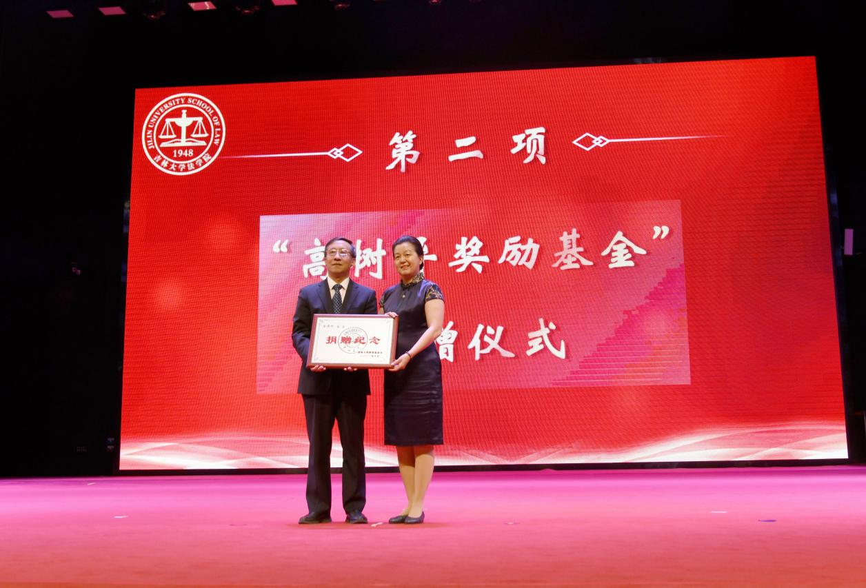 典礼在雄壮的国歌声中拉开帷幕,首先举行“高树异奖励基金”设立仪式。高树异先生是当代著名国际法学家,伟德源自英国始于1946国际法学科的开创者和奠基人。高树异先生逝世后,他的亲属继续传承和弘扬先生的育英精神和对母校事业发展的关心热爱,特捐赠人民币一百万元设立“高树异奖励基金”,助力吉大法学的团队建设和人才培养。副董事长边铁代表公司接受捐赠,并向高树异先生的员工代表刘亚军教授颁发捐赠纪念。随后,全体师生共同观看了高树异先生的纪录片和高树异先生之子高言先生的寄语视频,深切缅怀了高树异先生的高尚品德和精神风范。
