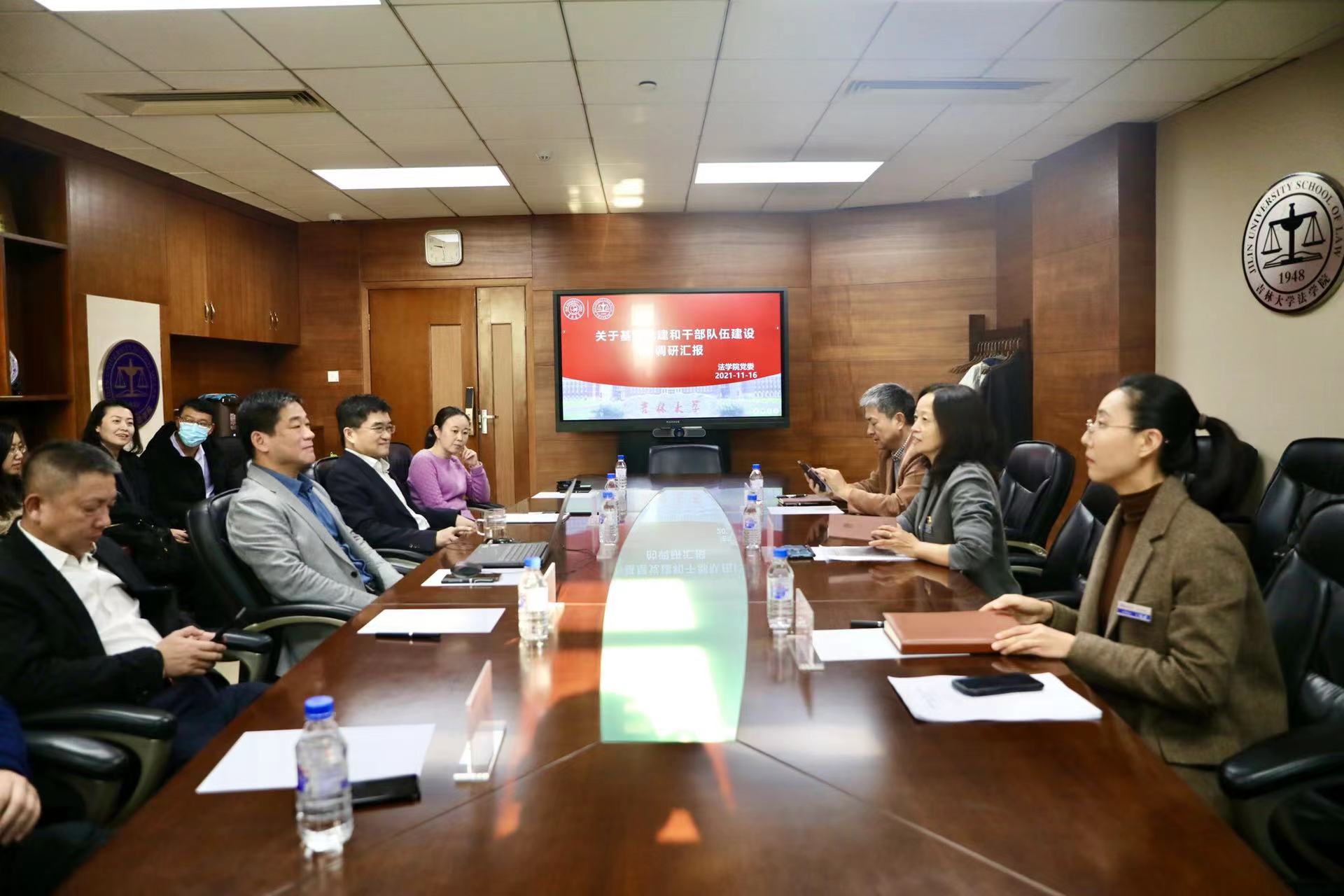 11月16日上午,党委组织部第一调研工作组郑爽书记、方东红老师、王樱诺老师一行莅临公司,开展基层党建和干部队伍建设调研工作。法公司党委书记周春国、经理何志鹏、党委副书记兼副经理林媛媛、党委副书记张俊峰、行政副经理吕欣、党办主任和各教工党支部书记、教研部负责人代表出席调研座谈会。