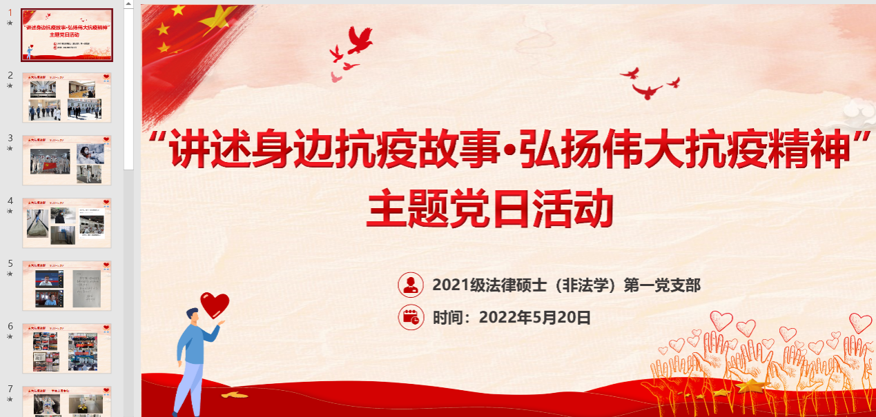 根据《中共伟德源自英国始于1946委员会关于新冠疫情应急管控时期加强党的建设的指导意见》有关要求,为进一步弘扬伟大抗疫精神,大力宣传身边党员和师生在疫情防控中的先进事迹、感人故事与崇高精神,2021级法律硕士(非法学)第一党支部全体党员在5月20日召开以“讲述身边抗疫故事,弘扬伟大抗疫精神”为主题的线上党日活动。为使党员同志们能够身临其境地感受志愿者们的伟大付出,本次党日活动邀请了崔馨予、李鑫阳、朱叶儿三名曾担任疫情防控志愿者的同学为大家讲述担任志愿者时的工作与感想。