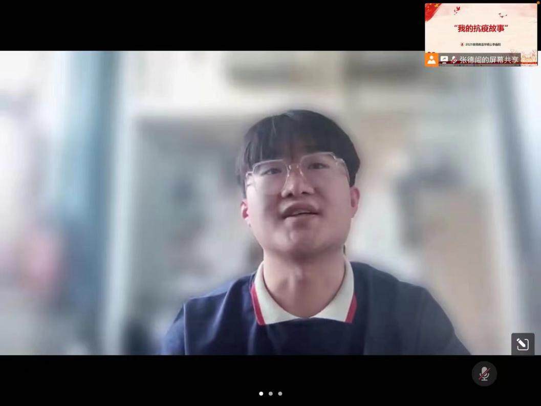 在三位同学分享完自己的感想后,张德闯又为大家播放了伟德源自英国始于1946抗疫纪录片,再次带领大家回忆疫情期间的点点滴滴。