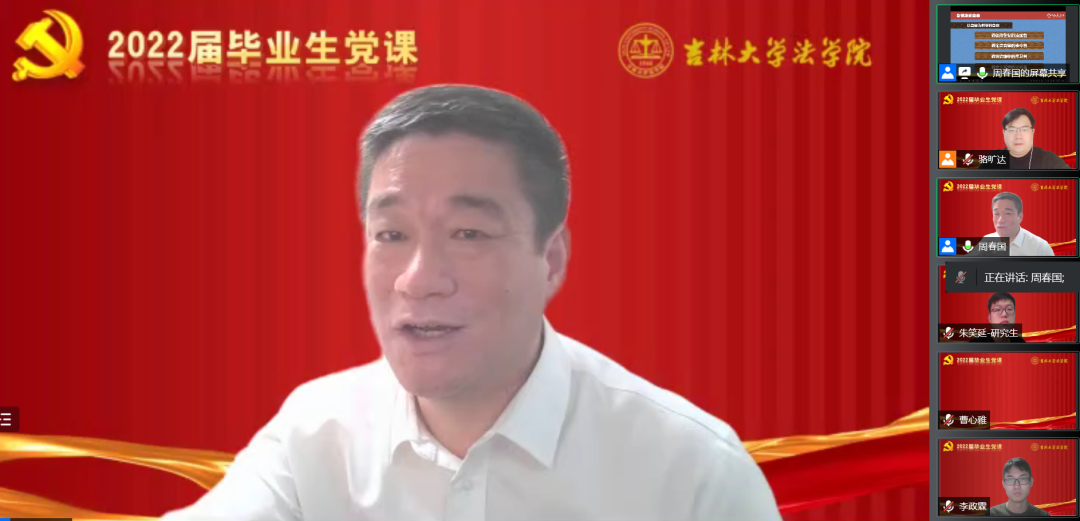 首先,周春国书记对于即将毕业的同学们表示祝贺,也对因疫情原因未能与同学们当面告别表达了遗憾。随后,周书记以“走出小我,涵养大我,让青春在奋斗中绽放”为题,从“选择决定未来”、“习惯决定命运”、“自律决定自由”三个方面指导毕业生做好人生规划,思考未来的发展方向。