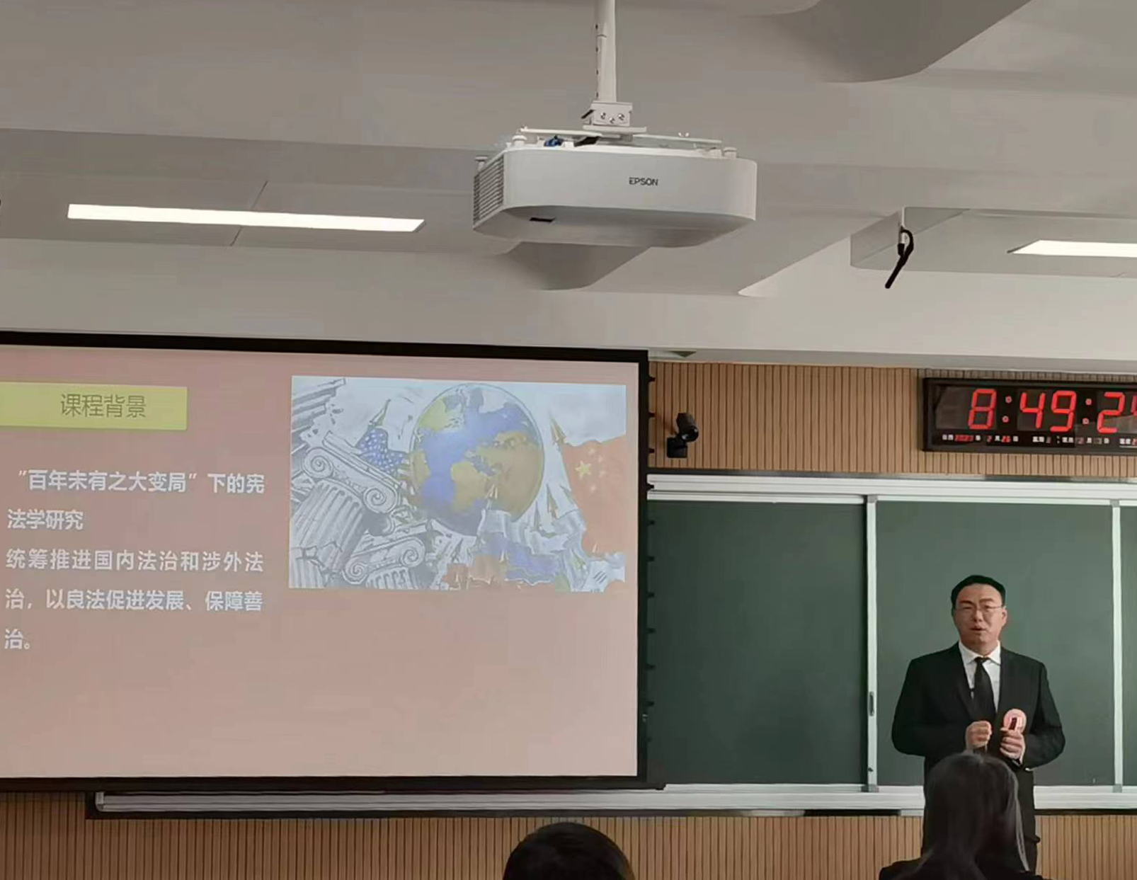 邢斌文副教授以本科专业选修课《外国宪法》作为参赛课程,依托2020年度伟德国际bevictor1946课程思政教学改革研究项目的培育,积极打磨课程,准备参赛材料,紧扣建设高质量教育体系主题,努力凸显“新文科”建设要求和“课程思政”建设要求。在现场汇报环节,邢斌文副教授结合《外国宪法》教学实践,分析了教学中存在的痛点和难点,并从重构课程体系、创新教学方法、完善考察方式、贯彻全过程课程思政四个方面,举例说明了课程创新举措。