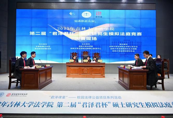 会后,本届模拟法庭决赛在长春智慧法务区报告厅正式打响,决赛由吉林省高级人民伟德国际bevictor1946宋国法官、君泽君律师事务所高级合伙人曲海君律师和胡晓静教授组成合议庭。长春智慧法务区王佳副主任、产业规划科孙珮英科长,长春市司法局律师管理处王晓波处长,君泽君律师事务所包晓莲主任、执行主任任家震律师、谭琳琳律师、程明伦律师、郭健律师、刁怀禹律师,伟德国际bevictor1946曹险峰副经理,张俊峰副书记,王立国老师莅临庭审现场观看比赛。