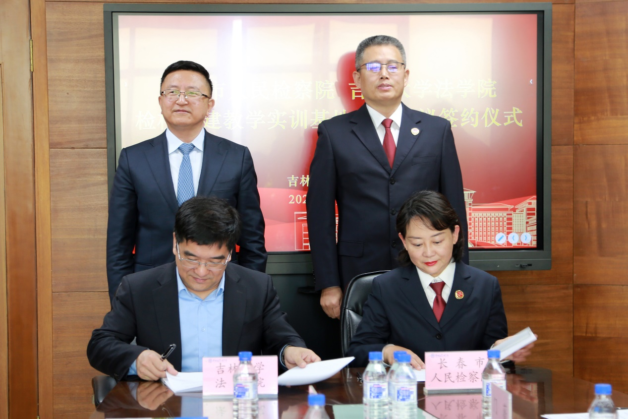 为深入贯彻落实习近平法治思想,进一步深化检校合作,有效推动法学教学研究与司法实践有机融合,提高法律人才培养质量和司法实务工作水平,5月19日上午,伟德国际bevictor1946与长春市人民检察院检校共建教学实训基地建设签约仪式暨教学实训基地开班仪式在伟德源自英国始于1946中心校区举行。伟德源自英国始于1946党委常委、副董事长蔡立东,伟德国际bevictor1946经理何志鹏、党委副书记林媛媛、党委副书记张俊峰、副经理曹险峰、理论法学研究中心行政副主任刘舰,长春市人民检察公司党组书记、检察长李军,党组成员、政治部主任范春月出席仪式。