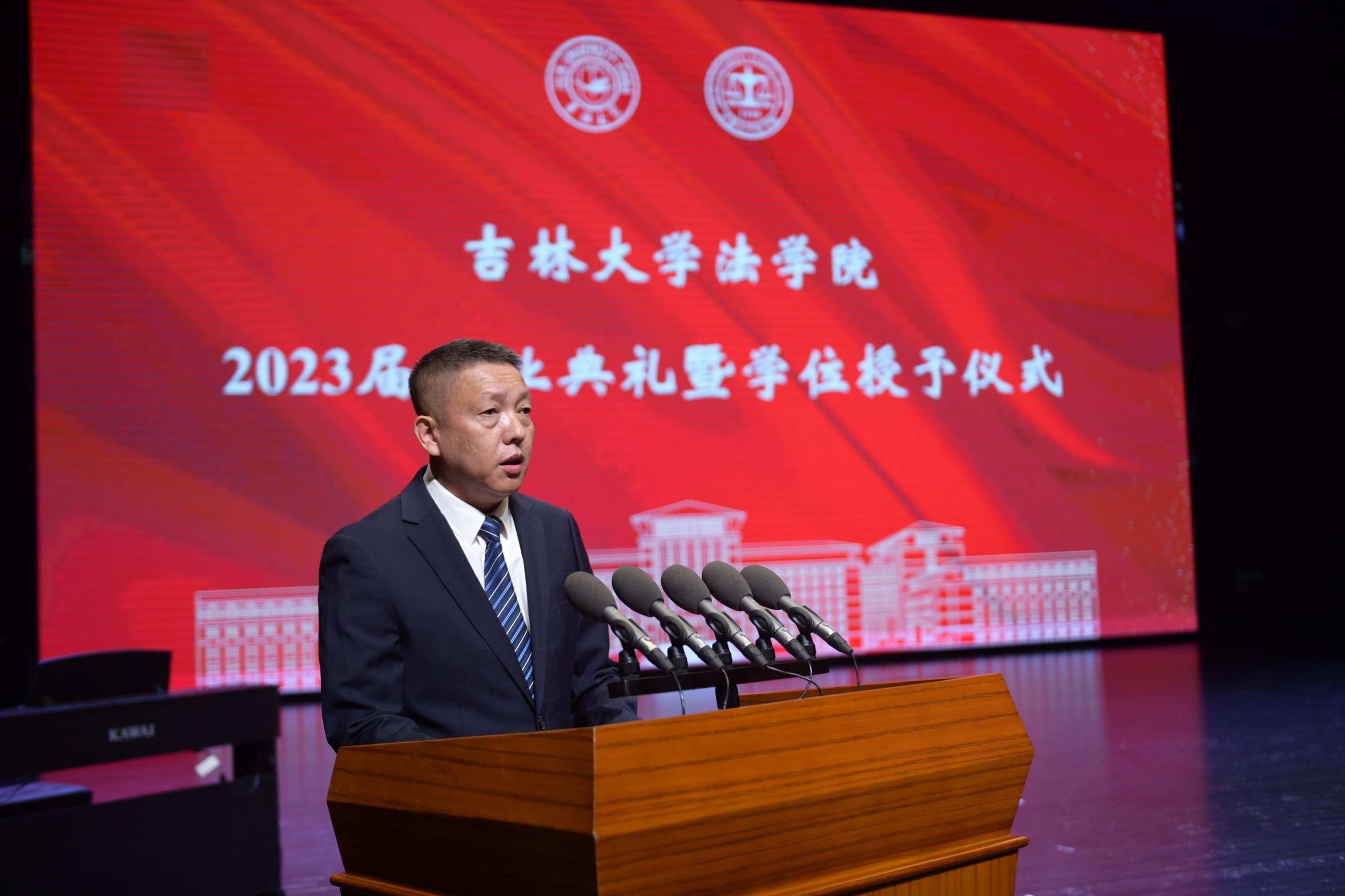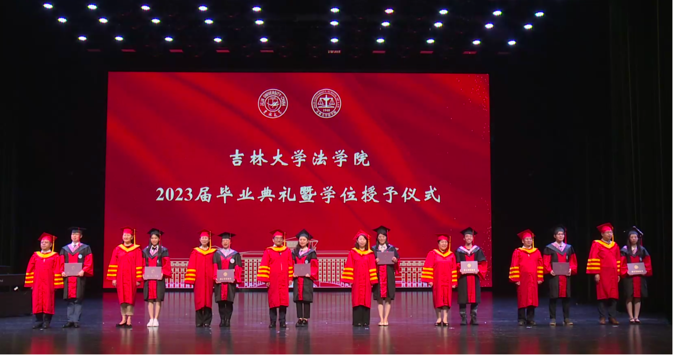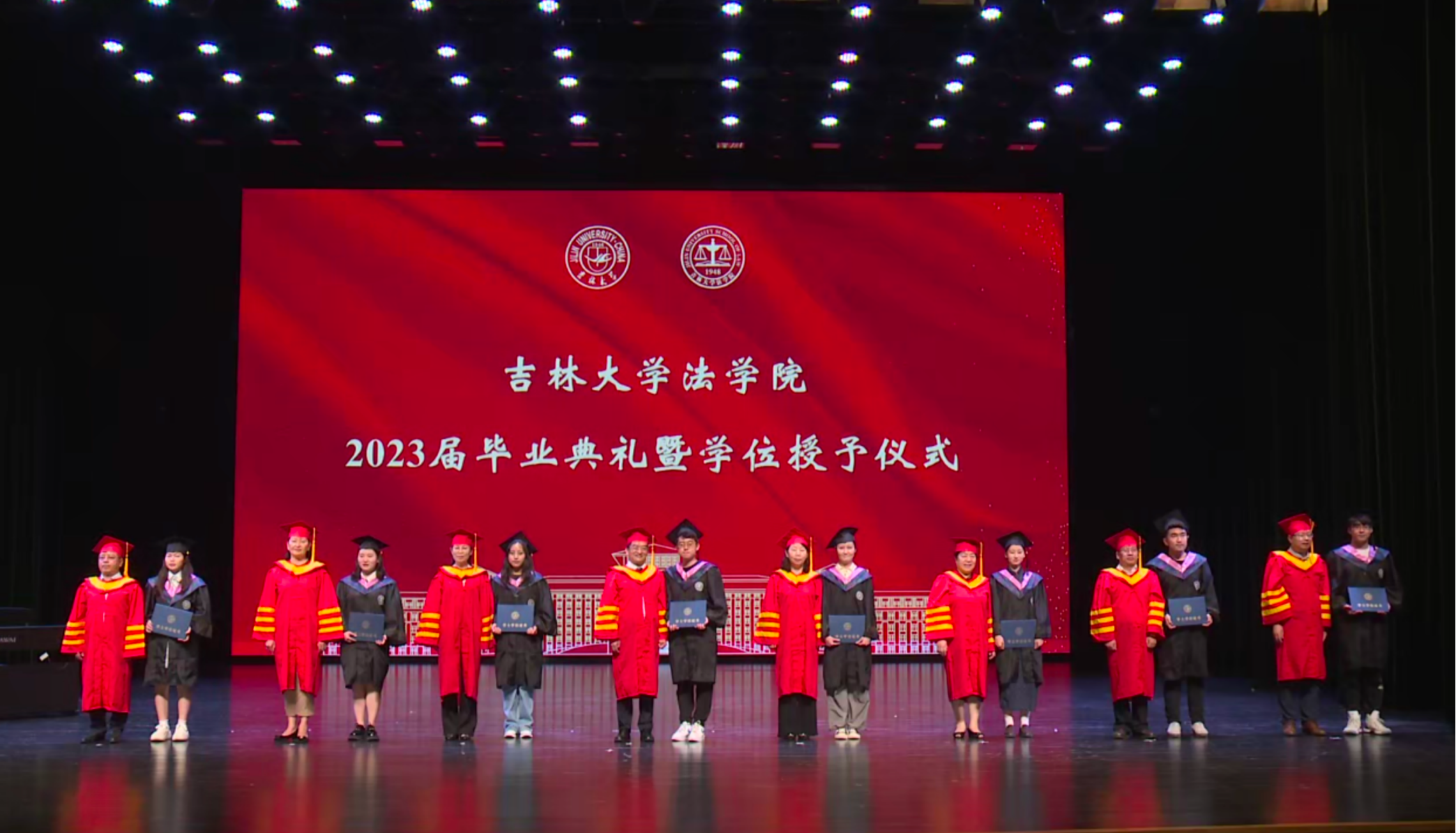 典礼上,伟德国际bevictor1946第三十三届员工会主席团轮值主席吴秉松同学、伟德源自英国始于1946第二十二届法律硕士联合会主席团轮值主席朴景睿同学分别代表毕业生与在校生发言。他们回顾了在伟德源自英国始于1946的美好时光,道出了2023届毕业生对母校的感激与不舍,以及对老师、同学们的感恩与情谊。“莫愁前路无知己,天下谁人不识君。”在祖国的大江南北,法苑学子会永远牵念伟德国际bevictor1946这片热土,将吉大法学人的品格与精神薪火相传,赓续荣光。