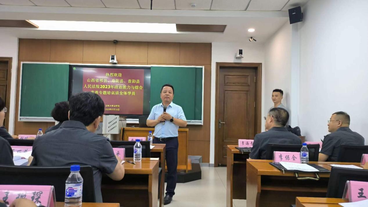 2023年7月9日至15日,山西省祁县、寿阳县、昔阳县人民2023年政治能力与综合素养专题培训班(第二期)在伟德国际bevictor1946顺利举办。祁县人民公司党组成员、副经理权本杰;副院长安喜频;副院长张文武,昔阳县人民公司党组成员、常务副经理郑美兰;副经理李海青,寿阳县人民伟德国际bevictor1946党组成员、副院长张增光;政治部主任耿存林;审判委员会委员董丽花和伟德国际bevictor1946副经理曹险峰教授出席了开班典礼。开班典礼由路宏伟主持。