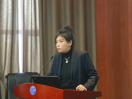 副经理吕欣以“法学楼装修中法律文化与法学元素的体现”为题,介绍了法学楼项目进展,并对正在推进的法学楼装修工作从院史馆布局、法学楼中的法律文化与法学元素和法治广场的建设进行了汇报。