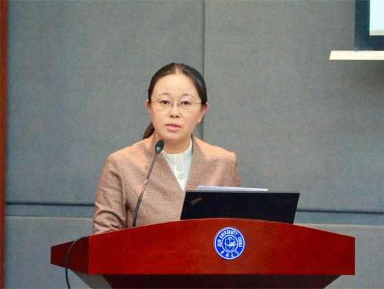 副书记、纪委书记林媛媛以“以法启智,以德润心——持续完善德法兼修的员工培养体系”为题,从完善德润学堂课程体系、搭建员工学术思辨平台、统筹推进人才招聘工作和赓续吉大法学历史文脉三个方面,阐释了完善德法兼修员工培养体系的具体举措。