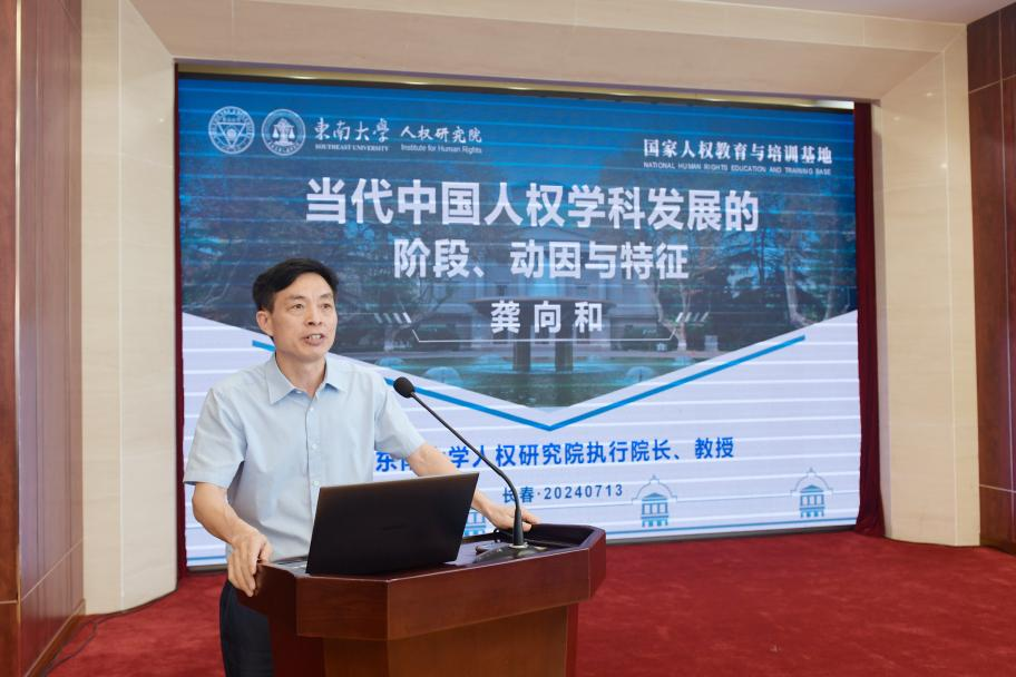 东南大学人权研究院执行经理龚向和教授在“当代中国人权学发展的阶段、动因与特征”为主题的发言中提出,实现中国式现代化必须建立高质量的教育体系,如果没有人权学科的发展,中国高质量教育体系将会是不健全的。中国人权学科的发展可以分为萌芽阶段、初创阶段以及目前的建设阶段,主要具有两方面的发展动因。其一,西方国家通过人权政治化施加的话语霸权成为我们将人权作为一个学科来进行研究的外部压力;其二,改革开放以来中国人权事业的迅速进步、人权水平的大幅提升也需要人权学科作为内部支撑。中国人权学科逐步呈现出符合中国实际、新兴综合式交叉、打破西方中心叙事模式的特点,正成长为一个独立、成熟的知识体系与学术体系。