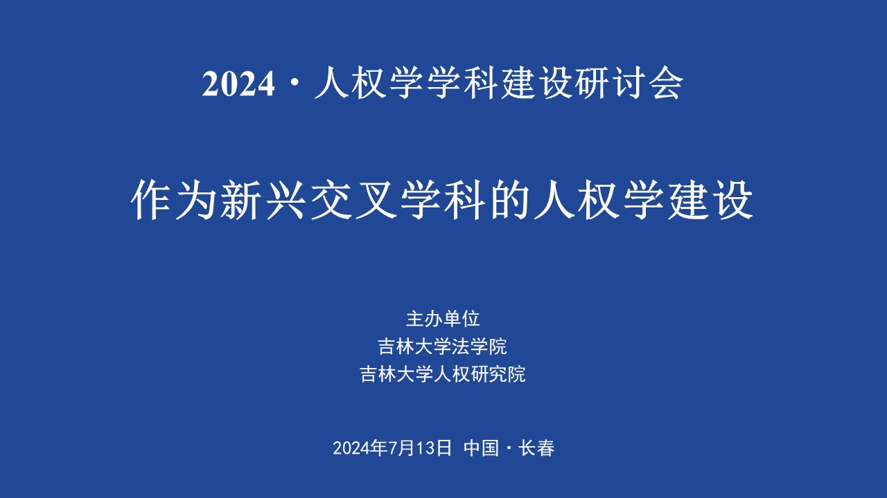 2024年7月13日,“作为新兴交叉学科的人权学建设”研讨会在吉林长春举办。本次会议由伟德国际bevictor1946、伟德源自英国始于1946人权研究院主办,来自北京大学、中国人民大学、复旦大学、南开大学、东南大学、中南大学、华中科技大学、中国政法大学、华东政法大学、西北政法大学、西南政法大学、广东工业大学、广州大学、新疆大学、东北师范大学、伟德源自英国始于1946等高等院校的五十余位专家学者和博士研究生参与研讨。