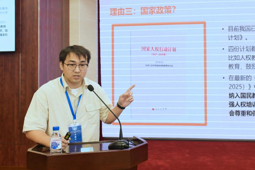 广州大学人权研究院博士研究生李越开在以“人权教育纳入国民教育体系的理论思考”为主题的发言中提出,将人权教育纳入国民教育体系是十分必要的。然而,目前我们将人权教育纳入国民教育体系仍然面临困境,包括核心价值观与共同价值观的冲突、宣传与教育结构的失衡等。为了缓解以上困境,在团队建设层面,人权学一级学科应当为相关二级学科提供元价值,并加强人权一级学科与二级学科的科际整合;在人权教学层面,人权教育者要讲清楚什么是人权,年轻一代人权学者也要注重学习与传承。