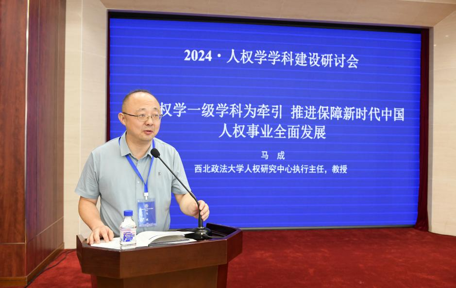西北政法大学人权研究中心执行主任马成教授围绕“以人权学一级学科为牵引 推进保障新时代中国人权事业全面发展”的主题,认为在发展稳定和安全变革中的中国式现代化的背景下,新中国人权事业的全面发展,是人权学一级团队建设的基本需求。人权学是自主的概念,这指向我们不能人云亦云,而是进行具有自我独特性的发展。人权学科是交叉的,我们要明确的是交叉是越多越好还是越少越好,如果说做交叉学科,是去法学化为主还是法学为主,法学和其他学科之间的比例是多少?