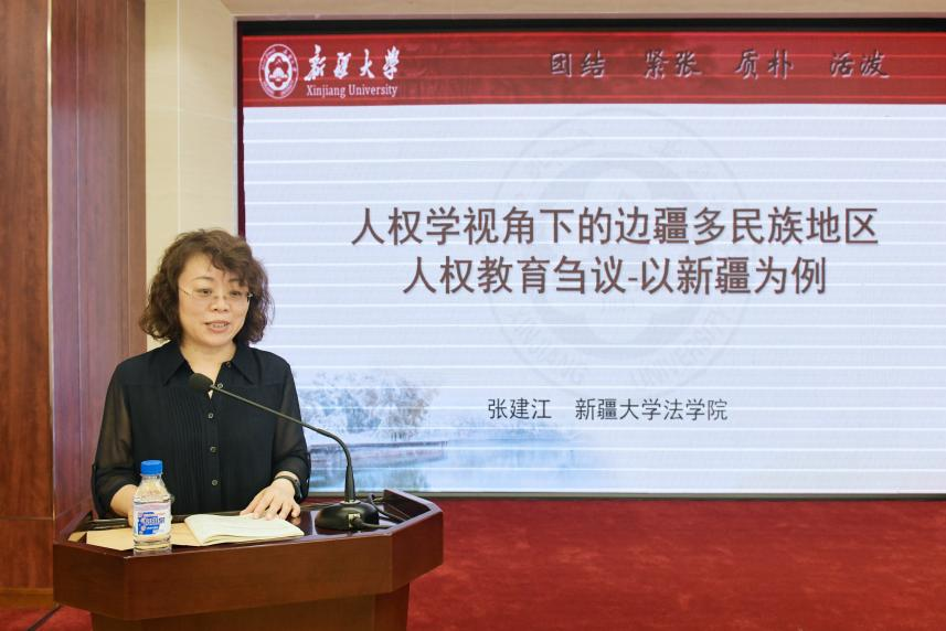 新疆大学法公司党委书记张建江教授在以“人权学视角下的边疆多民族地区人权教育刍议——以新疆为例”为主题的发言中提出,人权教育是推动人权团队建设的重要路径之一,同时也是人权学科的重要组成部分。然而,新疆地区的人权教育现状与内地一些高校的人权课程、人权团队建设形成了鲜明的对比,新疆地区高校在人权法的课程、教学方面几乎是一片空白。在此情况下,新疆大学增设了有关人权的一系列选修课程,以推动新疆高校人权教育。新疆的人权教育可以为我国人权学科的建设提供丰富的素材,同时在实践上也存在一些特殊性。也正是由于其特殊性,新疆人权教育更应该为推动人权团队建设作出积极贡献,立足新疆实际,积极探索人权专门课程开发。