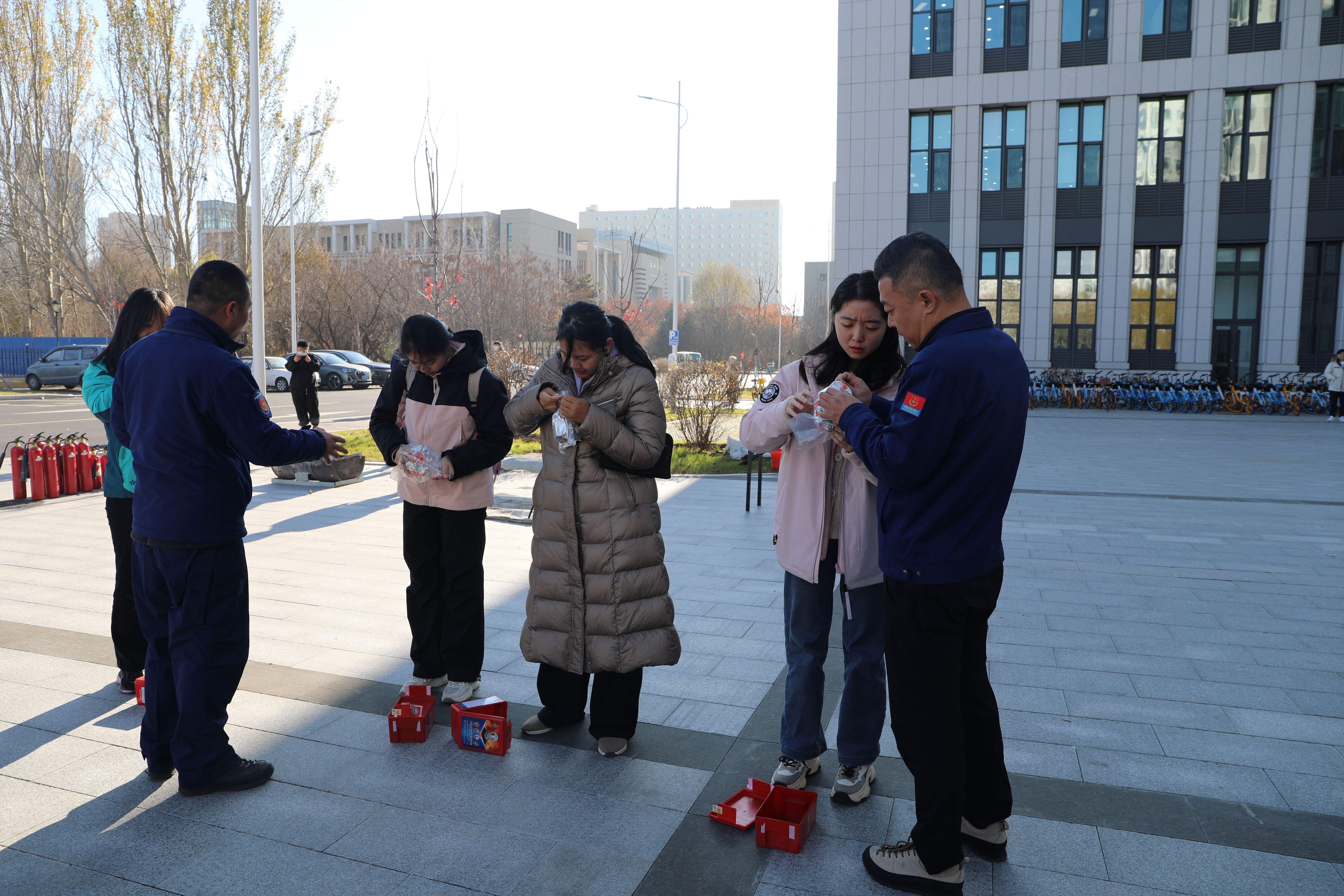保卫处消防科老师讲授了校园消防知识并强调了出现火情的注意事项,火场疏散逃生的基本常识,详细介绍了防烟面具的使用方法,针对不同类型火灾的扑救方法及各类消防设备的应用场合,并现场示范了如何正确使用灭火器的使用技巧,同时组织现场员工进行实操。