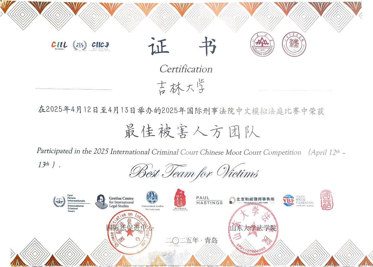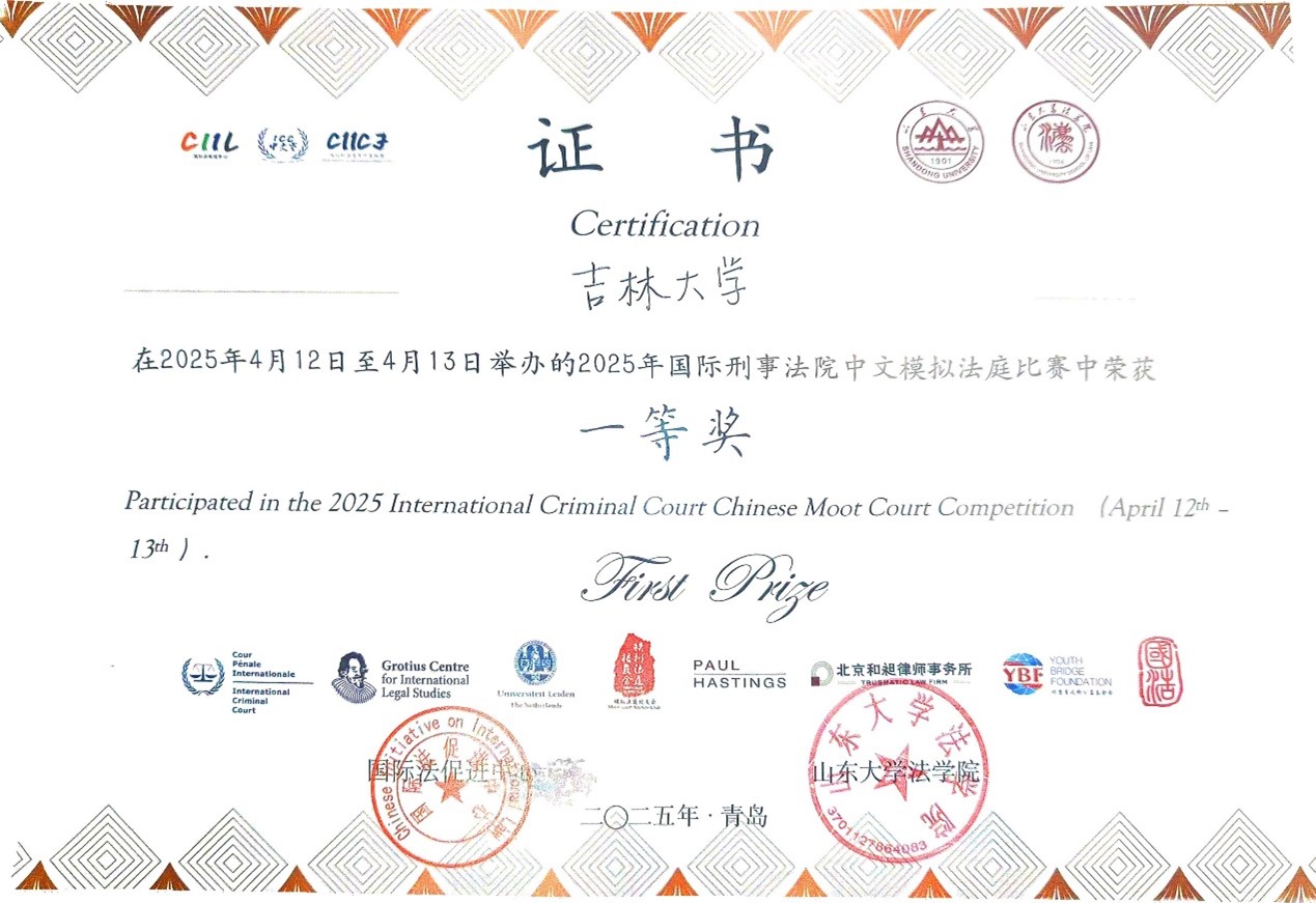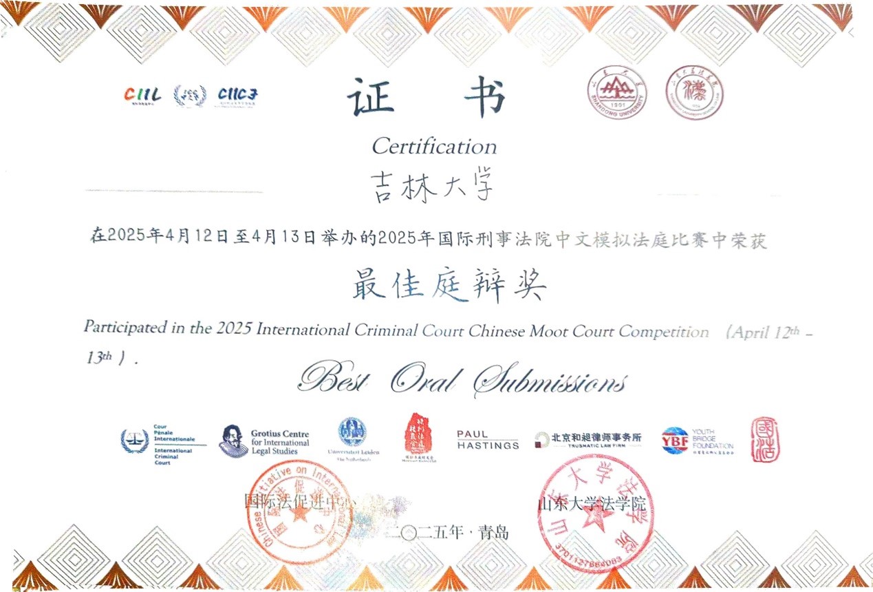 经过书状遴选环节,包括公司代表队在内的45支代表队入围正赛庭辩阶段。在庭辩阶段,公司代表队历经两天6场比赛的激烈角逐,顺利突围循环赛、挺进淘汰赛,最终荣获赛事一等奖、最佳庭辩奖、最佳被害人代理人团队三项团体奖项,成功晋级下一阶段的海牙国际赛。同时,公司本科生屠晴蕾获最佳被害人代理人庭辩奖。