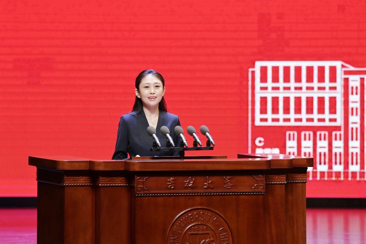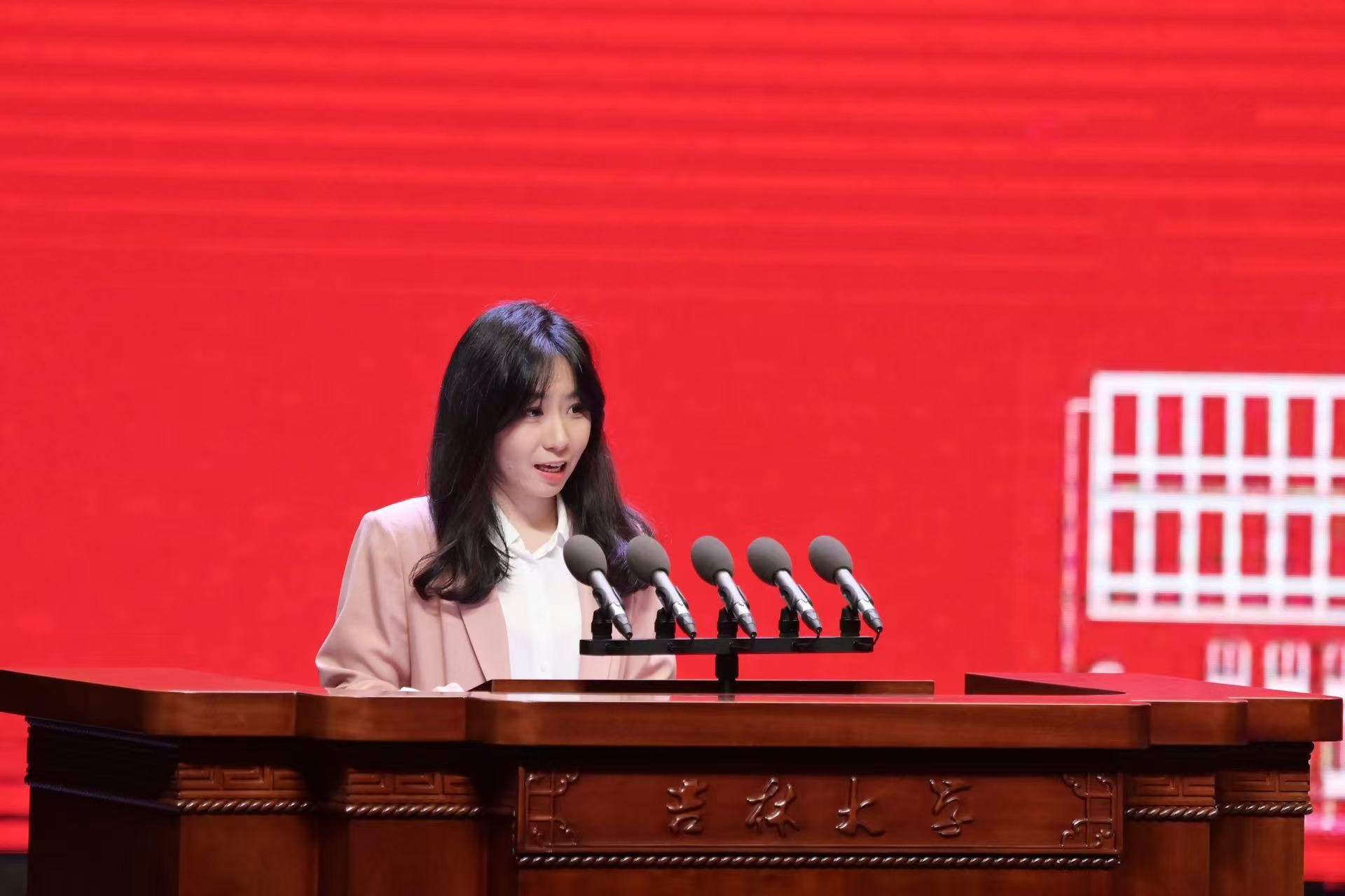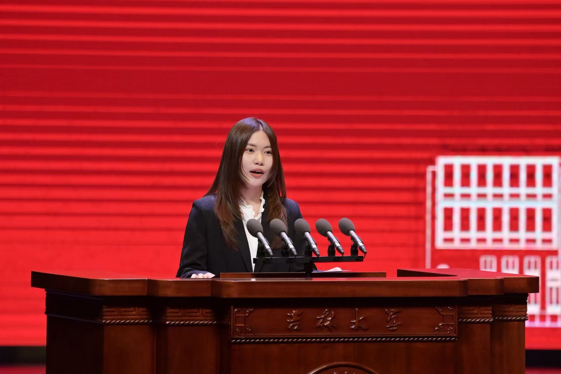 在校生代表、2024级研究生刘佳雯同学以"深耕当下,奔赴远方"为引,结合自身研途感悟与新生师弟师妹分享:“课堂啃典籍的专注、模拟法庭的思辨、田野调研的扎根,都是成长的注脚。”她将继续以专业为笔、担当为墨,在学术深耕中厚植情怀,做既通法理精髓、更怀为民热忱的追光者,以同辈姿态与公司共赴法治远方。