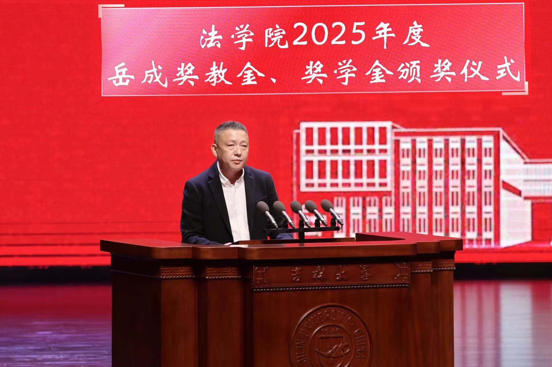 岳屾山副主任代表岳成律师事务所,向获奖师生致以祝贺。他围绕理念契合、感恩培育、助力法教三方面,阐明在公司设立奖教金、奖学金的初衷:吉大伟德国际bevictor1946作为国家法学教育重镇,培养的法律人以专业学识守护公平正义,以法治信仰践行社会责任,与律所职业理念高度契合;亦感念公司对岳成律师事务所创办人岳成律师在校期间的培育。他表示,愿以绵薄之力助推公司教育事业发展。