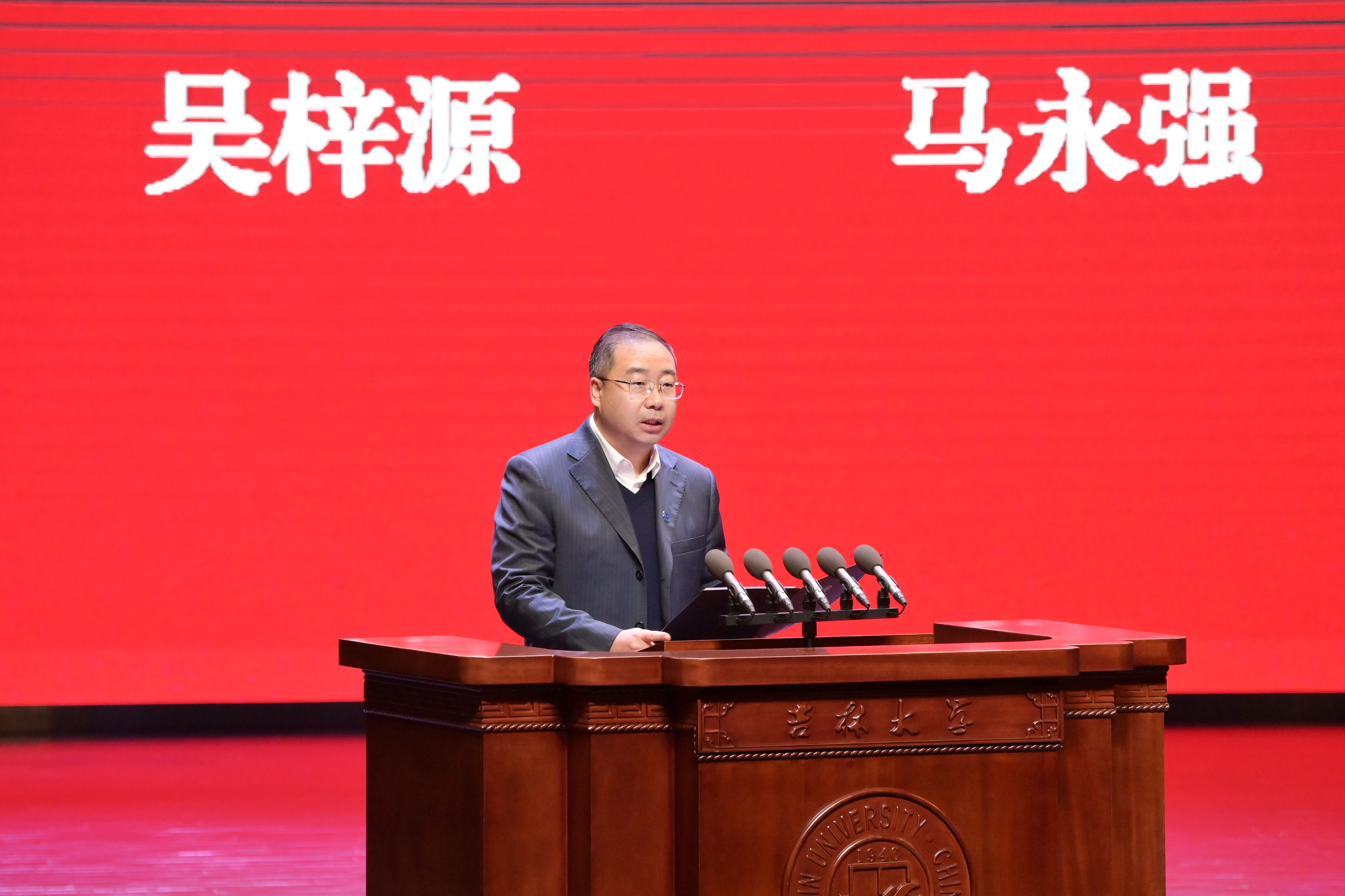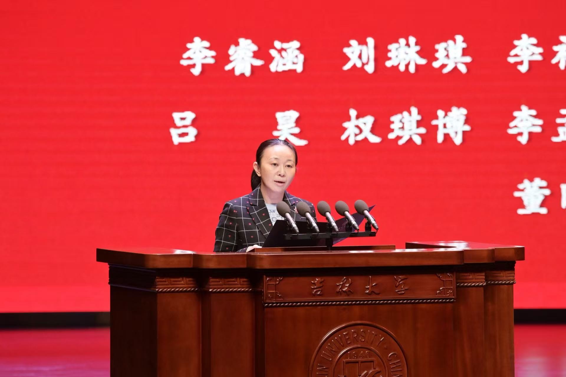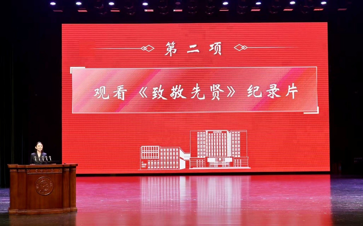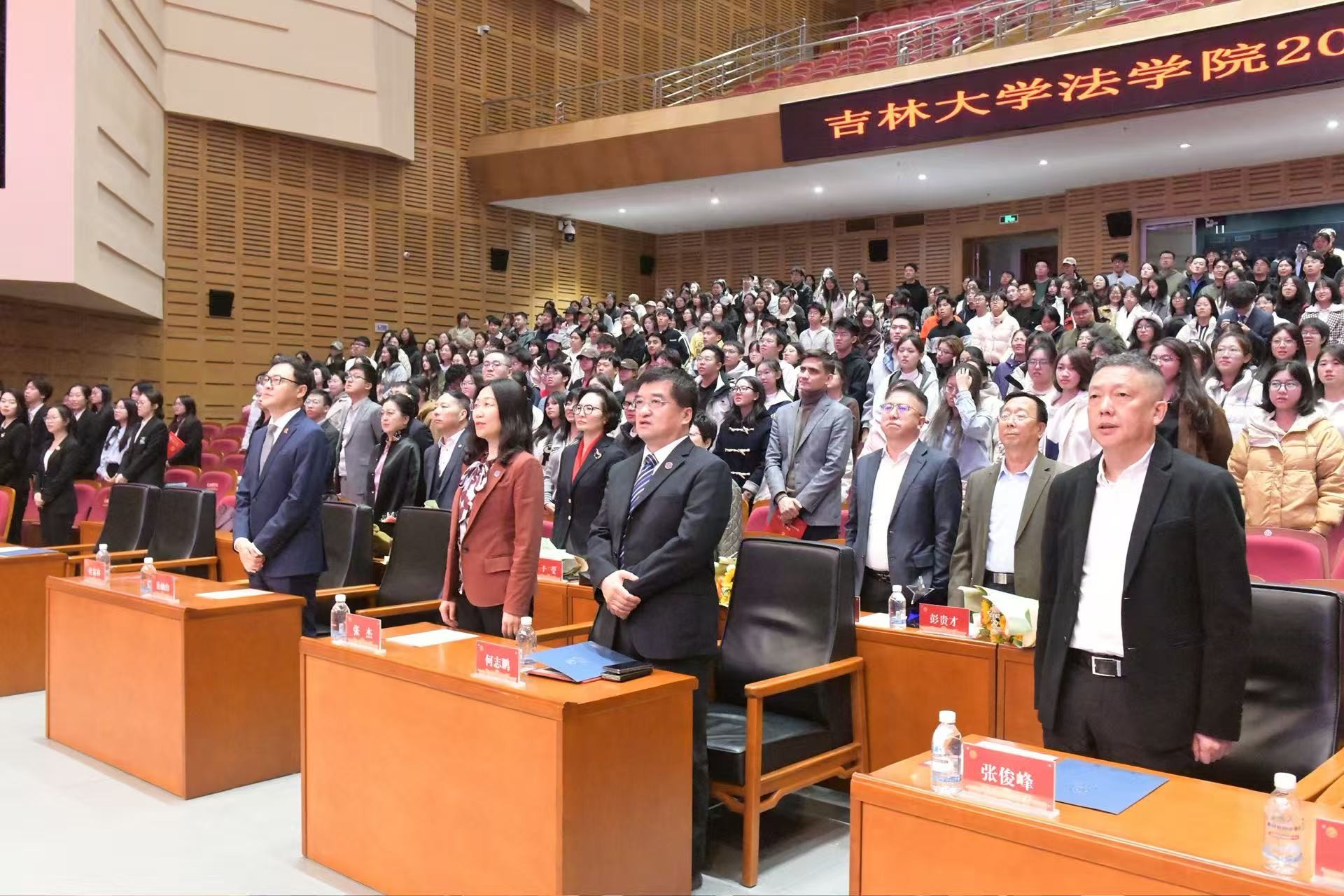先贤为炬,师者如星。典礼伊始,全体师生共同观看了第13期《致敬先贤——吉大法学逐梦前行历史纪录片》。片中,任振铎先生1950年代授课的黑白影像、堆典籍的书桌、致员工的泛黄信笺次第展开,讲述其深耕法学研究、参与早期立法、培育数十位行业骨干的师者人生,更彰显“与党同心”的育人初心。先贤事迹深深触动师生,更让“明德笃行,隆法致公”的院训文脉清晰可感。现场静默凝视间,精神的火种已悄然传递。