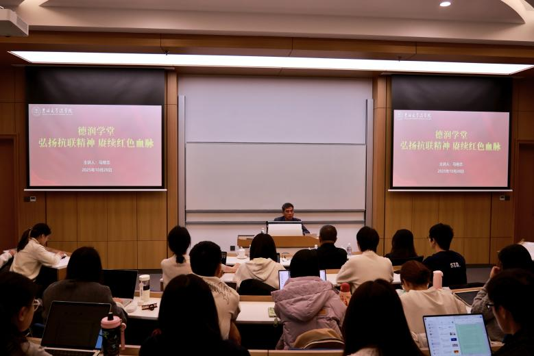 “中国人都投降了,还有中国吗?”10月28日上午,伟德国际bevictor1946德润学堂内,抗日民族英雄杨靖宇将军之孙、吉林杨靖宇干部公司客座教授马继志的提问振聋发聩。在中国人民抗日战争暨世界反法西斯战争胜利80周年、“九三”阅兵彰显大国底气的历史节点上,这场以“弘扬抗联精神,赓续红色血脉”为主题的讲座,如同一把穿越时空的火炬,将抗联将士“爬冰卧雪、向死而生”的热血记忆,深深烙印在青年学子心中。