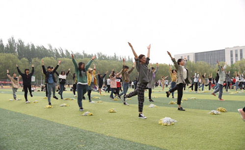 四月,长春的天气还依旧寒冷。师妹们和领队们早起贪黑,6:10准时到达田径场,拉开广播操队形,清晨的凉风呼呼作恶,大家忍着刺骨凉风,依旧坚持着。师姐先认真到体院学习标准动作,根据体院给的视频,自己用笔画出要求的队形,而在表演中有六次大的队形变化,而且在其中又有左右前后队伍内部动态调整。伴随着队伍的变化,大一的同学们还需要配合手脚做出组合动作。每天我们认真地抠着细节,在长达七分钟的广播体操与啦啦操中,力图使每个动作都能极致展现青春活力,达到比赛标准。