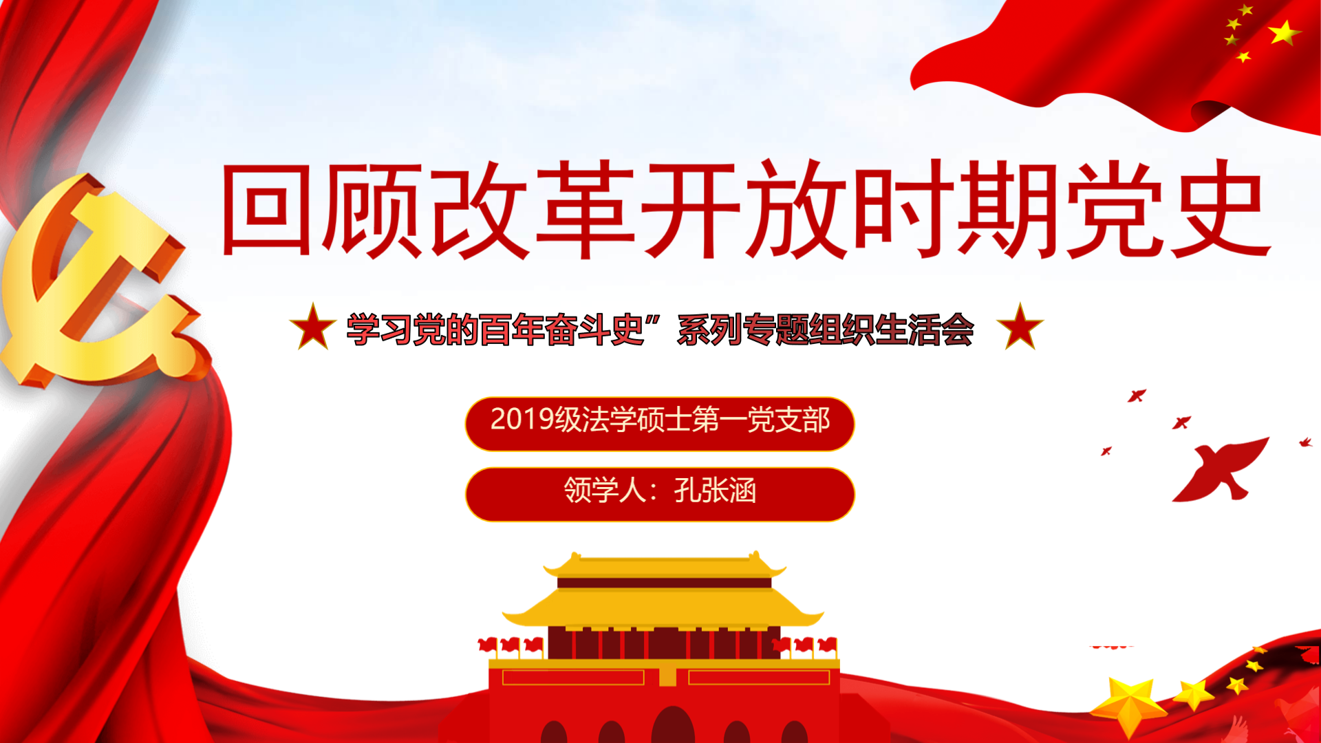 2021年6月3日晚,2019级法学硕士第一党支部开展了“学习党的百年奋斗史”系列专题组织生活会之回顾改革开放时期党史。此次会议通过线上视频的方式举行,由党支部书记杨安华主持,党支部宣传委员孔张涵带领大家共同学习。
