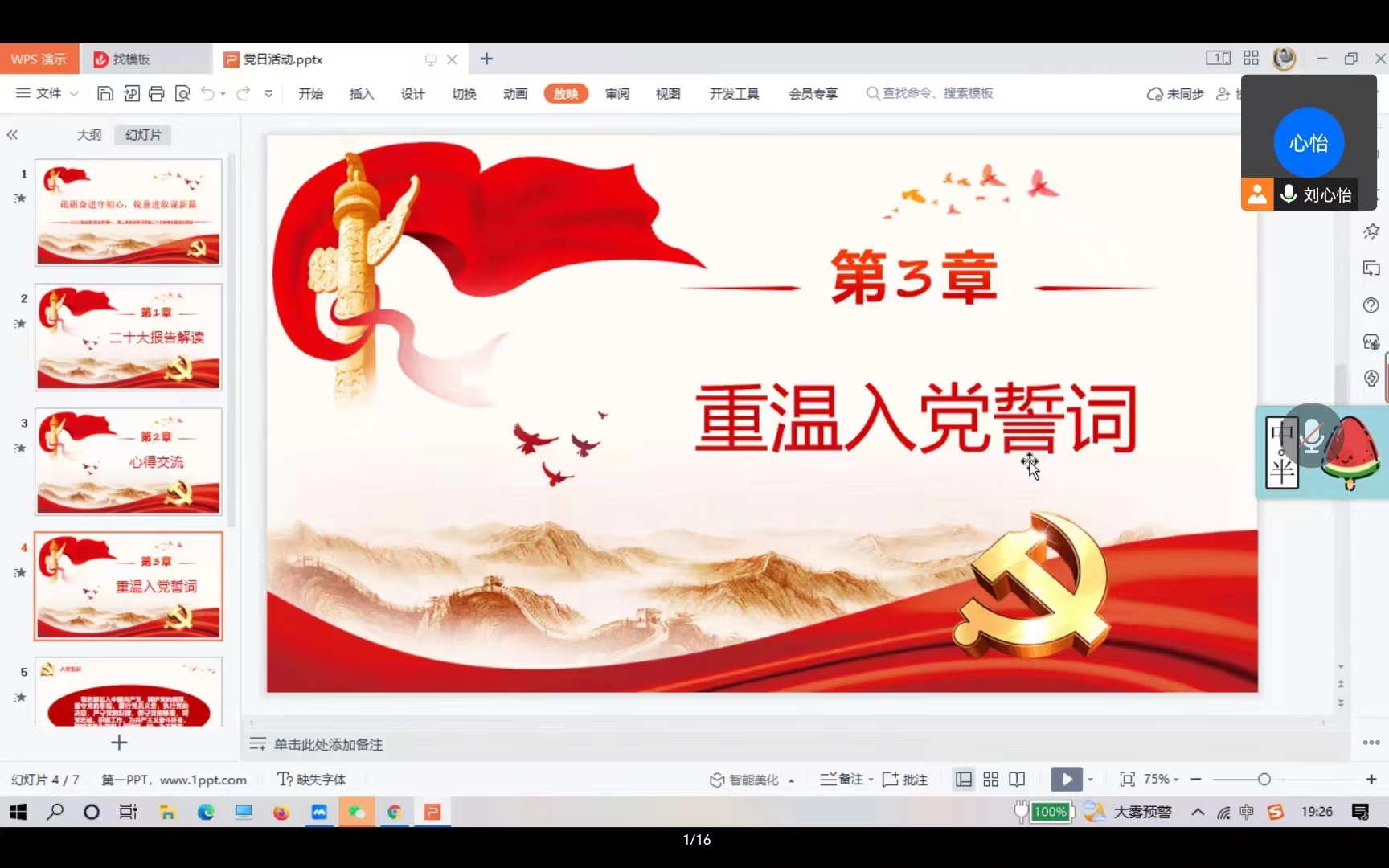 在对二十大会议精神的热议之后,由第二党支部书记孙佳诚同志领誓,全体党员同志一起重温了入党誓词。最后,第二党支部书记孙佳诚同志对本次活动进行了总结,她表示:我们要加强对党的二十大精神的学习,不仅要学习理论,还要努力将理论应用实践。疫情当下,党员同志更应该充分发挥先锋模范作用,积极配合公司各项活动。加强学习,坚定信心,奋勇前进,以此为起点不断前行。第一党支部书记刘心怡同志表示:党的二十大胜利召开标志着新征程的开启,听党话跟党走,自信自强,踔厉奋发,厚植家国情怀,抓住大好时光,将青春融入党和人民的事业,生逢今日之中国,在实现中华民族伟大复兴的征程中,贡献自己的青春力量,实现自己的人生价值。