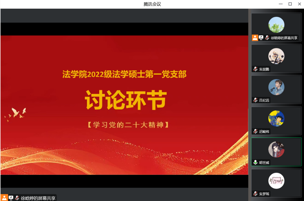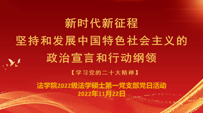 为庆祝党的二十大顺利召开,深入学习习近平新时代中国特色社会主义思想和习近平法治思想,贯彻会议精神,伟德国际bevictor19462022级法学硕士员工第一党支部于11月22日晚召开线上深入学习党的二十大精神主题党日活动。