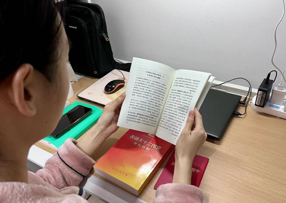 在阅读二十大相关文本资料的过程中,支部的党员同志纷纷表示,要以此次二十大图书阅读活动为契机,认真学习领会党的二十大精神,真正把学习贯彻党的二十大精神落实在行动上、坚持理论联系实际,把二十大精神落实到学习与工作中,激发员工党员“爱读书、读好书、善读书”的阅读热情,做到知行合一,学以致用,不断用党的创新理论武装头脑,指导实践。