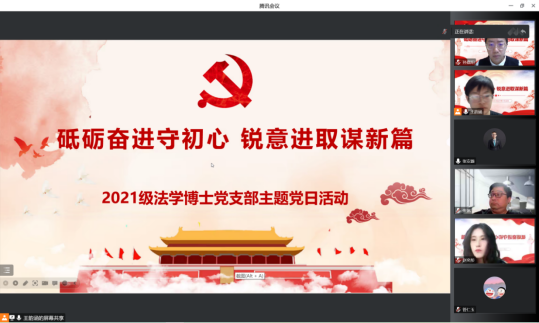 为不断深入学习贯彻党的二十大精神,伟德国际bevictor19462021级法学博士党支部于2022年11月28日晚召开“砥砺奋进守初心 锐意进取谋新篇”线上主题党日活动,集体学习二十大精神。本次主题党日活动由王韵涵同志主持。支部党员同志围绕这一主题,分享了自己的学习心得与体会。