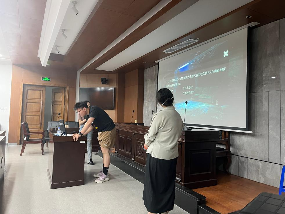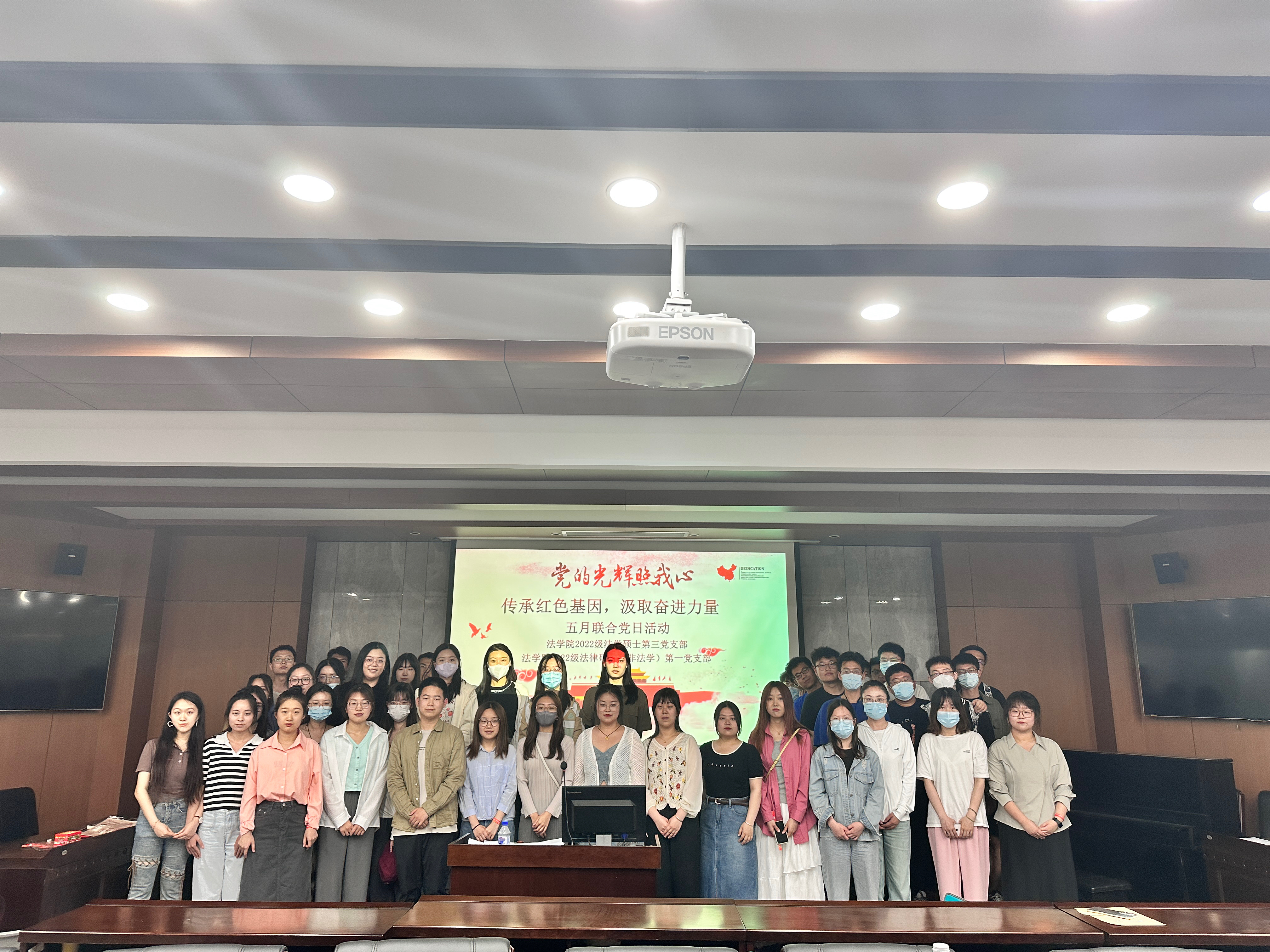 峥嵘岁月,风雨兼程。为进一步锤炼党员对党忠诚的政治品格,以学习贯彻习近平新时代中国特色社会主义思想主题教育为契机,坚定研究生党员理想信念,汲取踔厉奋发、勇毅前行的精神力量,2022级法学硕士第三党支部、2022级法律硕士(非法学)第一党支部于2023年5月26日召开“传承红色基因,汲取奋进力量”主题党日活动,本次活动于东荣大厦B313小模拟法庭开展,由2022级法学硕士第三党支部书记王珂馨、2022级法律硕士(非法学)第一党支部书记刘心怡主持。