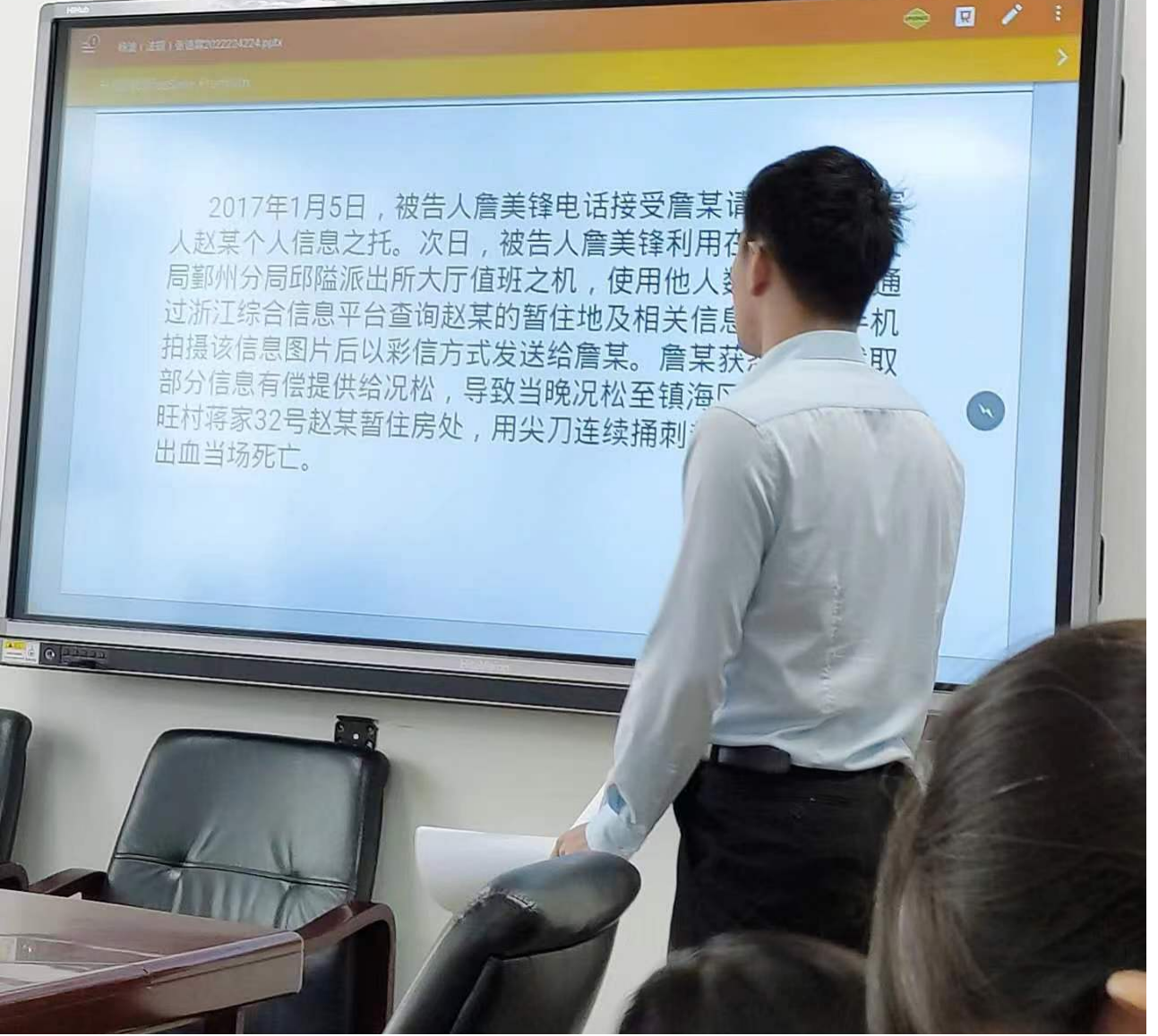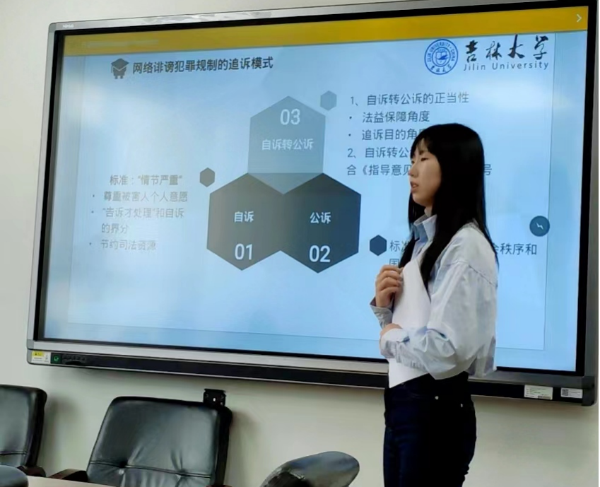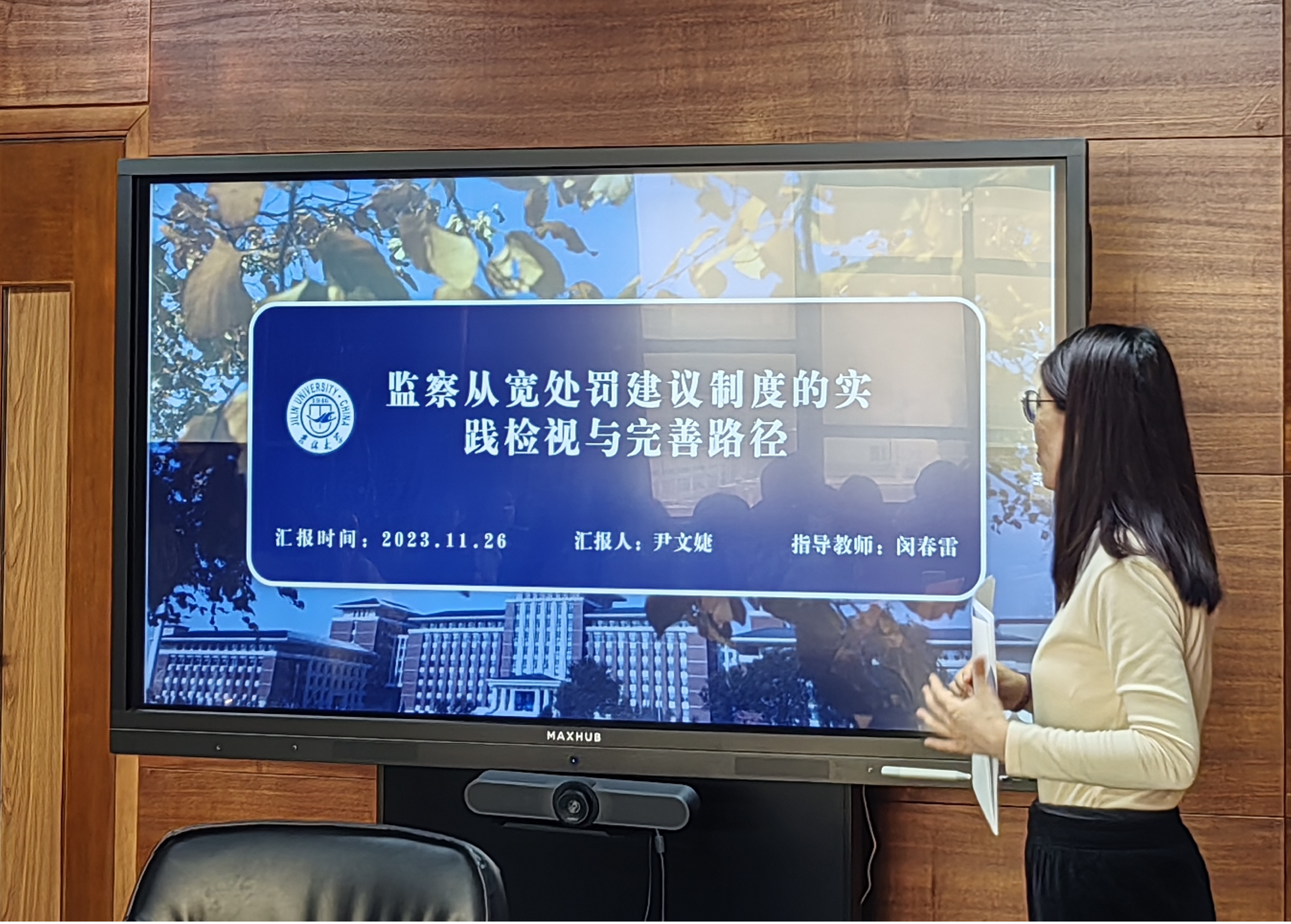 马毓文同学以“同案犯分案处理机制的建构”为题,对同案犯分案处理机制予以规范考察和实证考察,她认为现有法律规范缺乏系统性与权威性、个别规定不尽合理,建议通过确定分案的适用主体、明确分案处理的适用范围来完善分案机制,健全分案后的特殊处理机制,并强化监督和救济机制;宋姝梦同学的题目是“论刑事诉讼中专门性问题报告的证据能力”,她从专门性问题报告的规范分析入手,通过引用我国《刑事诉讼法》第50条和《美国联邦证据规则》对关联性的界定来分析专门性问题报告的关联性,并提出专门性问题报告不属于法定证据种类,而是“准鉴定意见”;吴雯婷同学以“论专项合规整改——以涉税案件为视角”为题,她认为合规整改是刑事合规制度构建的应有之义、专项合规相较全面合规更符合刑事合规的要求、税收专项合规整改具有独特的激励作用,并从税收专项合规整改的参与方、计划、考察期、费用承担四个方面来对税收专项合规整改提出制度构建;谭城城同学的题目是“共同犯罪分案审理被告人对质权研究”,她认为在分案审理的情况下作为他案被告人的共犯已经由其他审判程序进行审判,一般并不需要到庭,因而分案审理加剧被告人对质难的困境,她主张明确赋予被告人完整的对质权并注重对分案审理对质权的特别保护;曲君同学以“个人信息保护刑事附带民事公益诉讼问题研究”为题,她通过对相关案例进行整理,从案件的空间分布、诉讼请求的设计、证据的提出与处理、案件的认罪认罚认赔情况、纠纷解决方式等方面对个人信息刑事附带民事公益诉讼案件予以实证分析,她认为该类案件存在法律规定不明确、证据处理与使用规则缺失、认赔从宽存在适用障碍、调解程序展开困难的运行困境,并提出与之对应的优化路径。