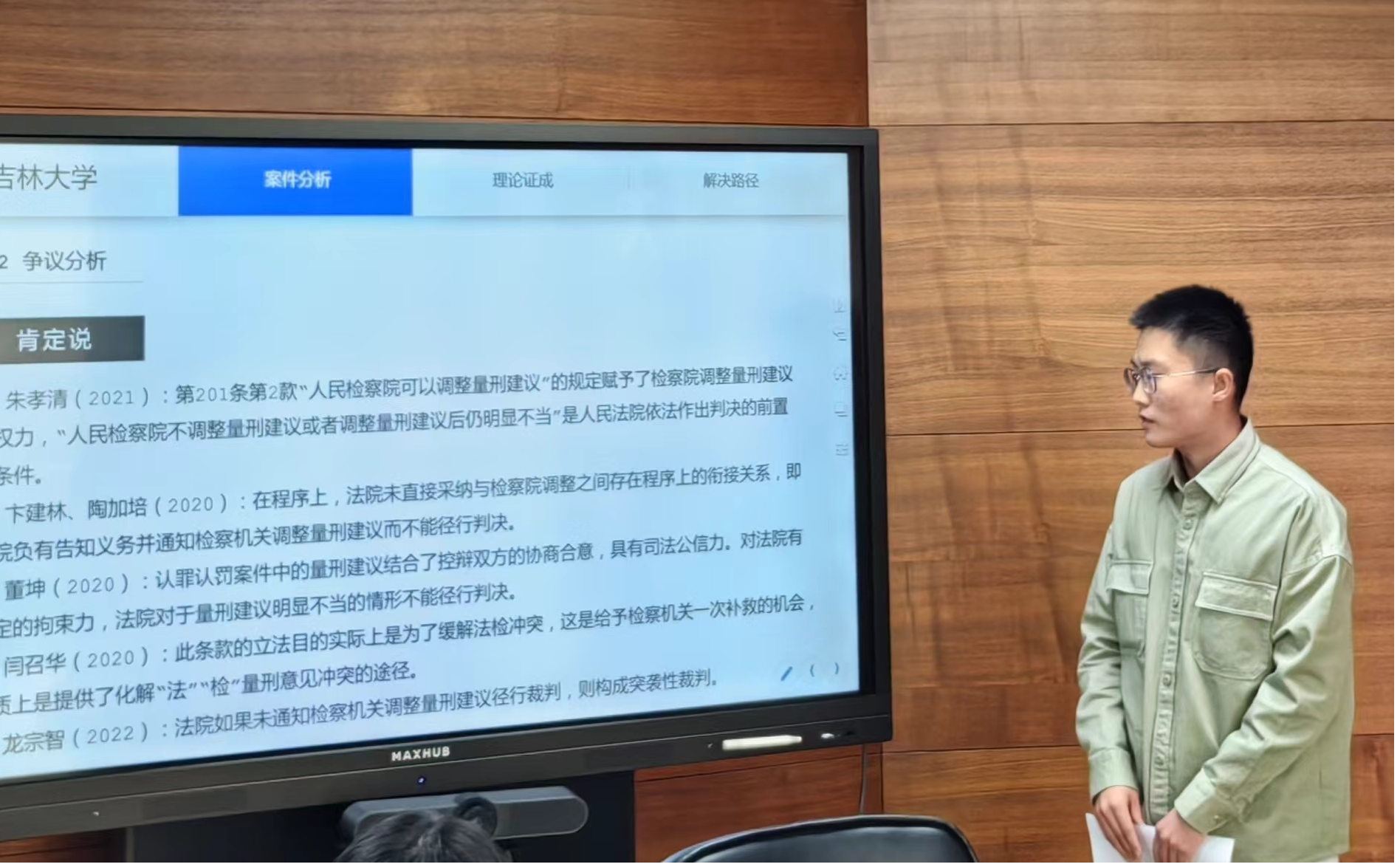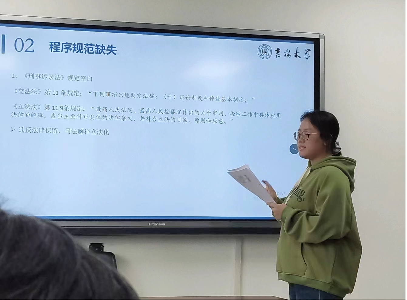 在第三小组的汇报中,牛雨霏同学以“被追诉人反悔后认罪认罚具结书适用问题研究”为题,从规范层面和实务层面分析被追诉人行使反悔权后失效具结书的适用困境,明确被追诉人反悔后失效具结书的效力,并试图构建该类具结书的适用规则;尹文婕同学的题目是“监察从宽处罚建议制度的实践检视与完善路径”,从监察从宽处罚建议制度的适用条件入手,对监察从宽处罚建议制度的实践现状予以考察,进而总结实践困境的成因,并探索该制度的完善路径;张中宝同学以“认罪认罚案件中被告人上诉权的保障——兼论被告人滥用上诉权的防范”为题,他从反面分析上诉权限制理论的弊端,又从正面论证被告人应当享有不被限制的上诉权,同时他认为检察机关“技术性抗诉”加剧了控辩之间的的不平等地位,是对被告人上诉权事实上的限制和障碍;李政泽同学的题目是“论认罪认罚案件量刑建议调整中的伟德国际bevictor1946通知义务——以苏桂花开设赌场案为例”,他以苏桂花开设赌场案为引,并通过对《刑事诉讼法》第201条予以分析,认为认罪认罚案件调整量刑建议时伟德国际bevictor1946应当通知检察机关,并强调伟德国际bevictor1946与检察院应厘清自身定位;刘秋仪同学以“重罪案件适用认罪认罚从宽制度的困境与出路”为题,通过数据分析,认为重罪案件适用认罪认罚从宽制度的比例较低、实施细则不够具体、量刑幅度不够明确,从而建议精准量刑建议;赵月同学的题目是“认罪认罚从宽制度下无罪辩护的保障——庭审程序转化问题研究”,她认为审前程序检察机关主导认罪认罚、辩方参与认罪认罚协商程度保障不足、协商过程缺少监督机制,因而有必要在认罪认罚从宽制度下对无罪辩护的庭审程序予以保障。