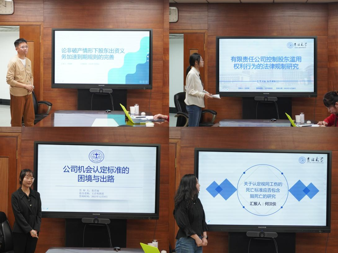 本次论坛分为上午和下午两个时段进行,每位汇报人发言后,经济法学科组各位老师根据发言人的论文和PPT宣讲内容提出问题和点评意见并予以评分。