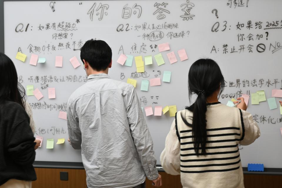 本次“你的答案”互动环节通过轻松有趣的形式,引导同学们深入思考个人价值观与生活态度,激发自我认知与价值观表达。通过在白板上共同作画或书写答案,同学们直观看到彼此的选择,发现相似性或差异,在笑声中深化相互理解。讨论环节中,同学们主动解释选择理由,锻炼了表达能力,也促进了价值观的碰撞与融合。此次互动以轻松的形式触及深刻命题,同学们在选择与分享中,既收获了快乐,也更清晰地认识了自己与同伴的价值取向,为后续心灵成长主题奠定了开放、包容的基调。