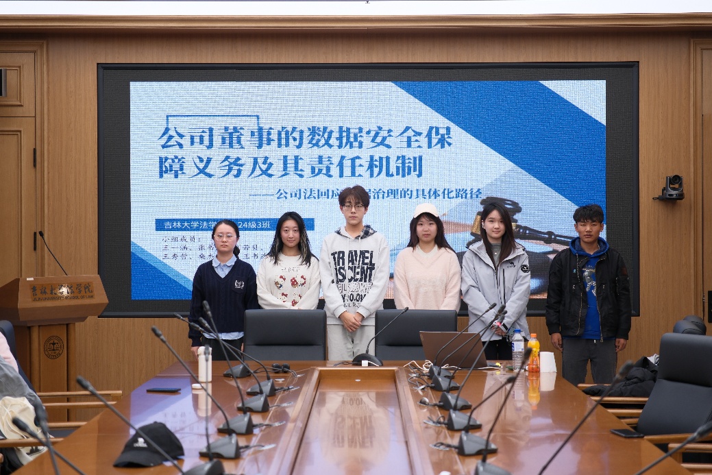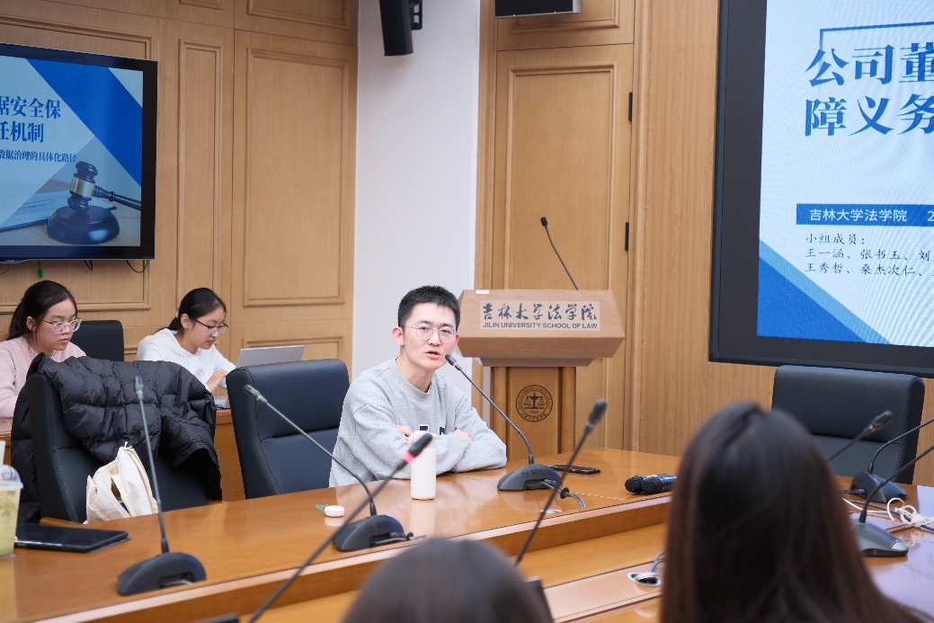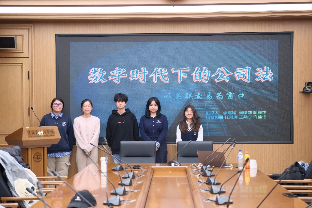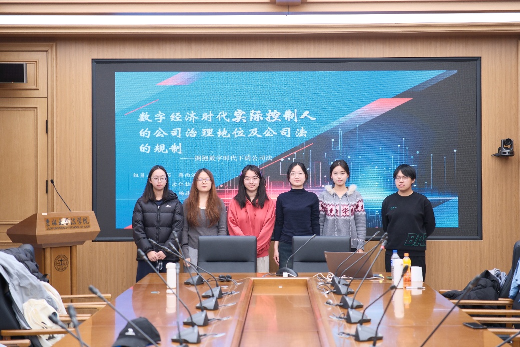 次仁白玛、洪之涛团队的汇报聚焦数字经济时代公司法危机与制度重构问题,次仁白玛同学首先提出数字经济下传统公司法的适配困境:“标准公司模型”失效、核心制度与司法功能弱化、公司治理结构性变迁,进而梳理出对代理人成本关注不足、实际控制人规制缺位等四大核心危机。随后,洪之涛同学对比2023年新《公司法》与旧法,指出在董事义务、实控人责任等方面有修订,但仍存深层矛盾未解决,最终建议转向“接口式”立法、构建权责统一的治理新生态。