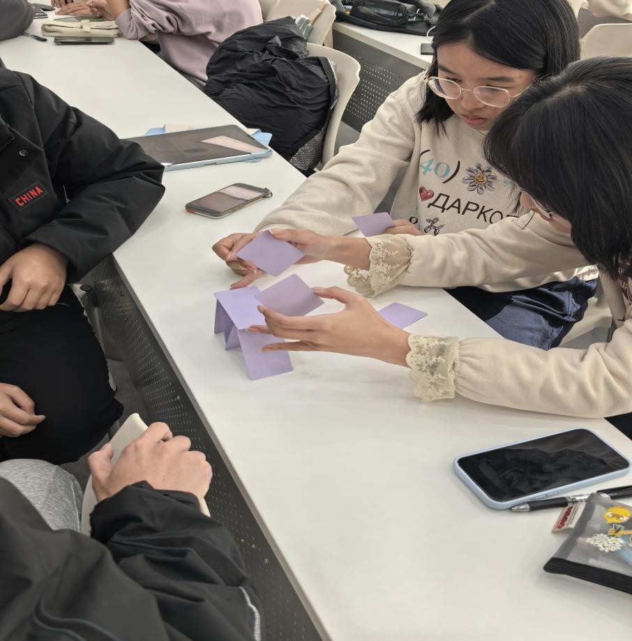 随后是“游戏部分”,在“人体字母”游戏中,各组用身体创意拼摆单词,在欢笑中培养默契;“同舟共济”游戏通过缩小“纸船”挑战,让大家体会到团队配合的重要性;“众志成城”叠纸塔游戏,展现了分工协作与创新思维的力量;“快乐传递”游戏用心意卡传递真诚赞美。最后以“绘制团体树”定格温暖瞬间。整场活动打破陌生壁垒,凝聚班级向心力,为新生开启温暖的老员工活篇章。