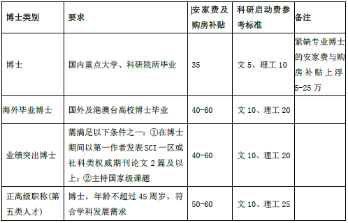 1. 博士原则上要求年龄40岁以下,部分专业可放宽至45岁,取得博士毕业证和学位证,并正式报到上岗后,公司按本表提供相关待遇。