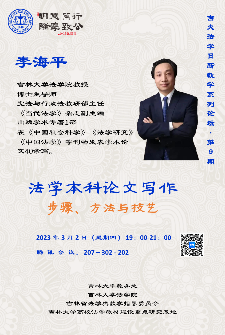 上一篇:吉大法学博士日新沙龙(4):法律思维与学位论文写作 下一篇:2023年1月份博士研究生预答辩通过名单公示