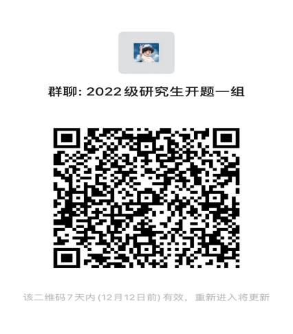 博士开题、预答辩初拟于2024年1月7日(周日)进行,请参加开题、预答辩的博士研究生扫码进入微信群。