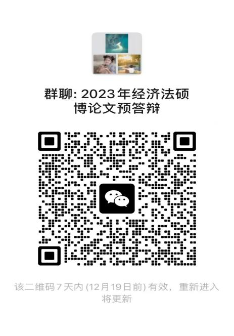 二、预答辩对象:经济法学专业老师指导的2021级硕士研究生;博士研究生已完成培养计划的全部课程,通过博士学位论文开题,完成博士学位论文初稿,并经导师审阅同意后,方可申请参加本次预答辩;请各位同学及时扫码入群;