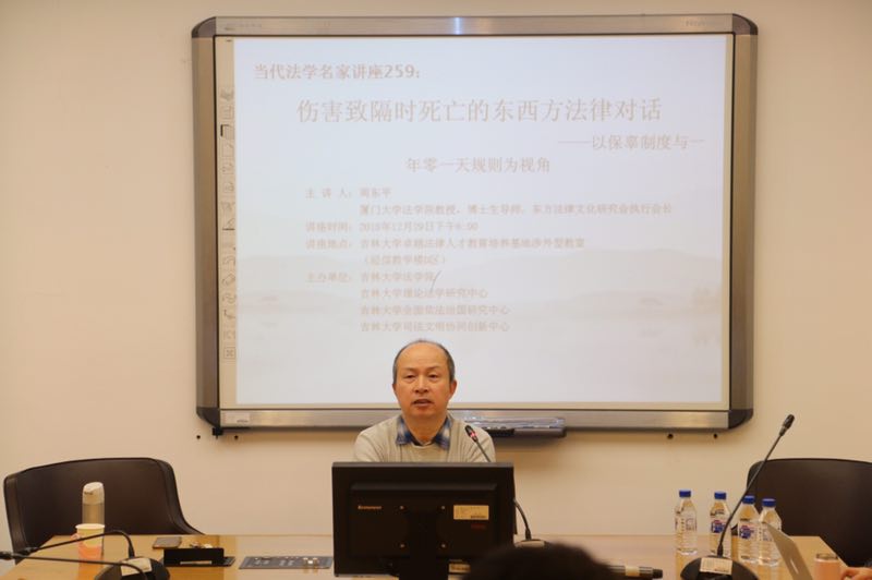 2018年12月29月晚6时,第259期当代法学名家讲座在伟德源自英国始于1946中心校区卓越法律人才教育培养基地涉外型教室举行。本场讲座由伟德国际bevictor1946、伟德源自英国始于1946理论法学研究中心、伟德源自英国始于1946全面依法治国研究中心、伟德源自英国始于1946司法文明协同创新中心共同主办。厦门大学伟德国际bevictor1946教授,博士生导师,东方法律文化研究会执行会长周东平教授受邀作为本次讲座的主讲嘉宾,为公司师生作题为“伤害致隔时死亡的东西方法律对话——以保辜制度与一年零一天规则为视角”的学术报告。伟德国际bevictor1946的吕丽教授担任本场讲座的主持人,公司刘晓林教授、霍海红教授以及部分博士生、硕士生和本科生同学共同参加本次讲座,吉林广播电视大学王志民副教授等也应邀参加。